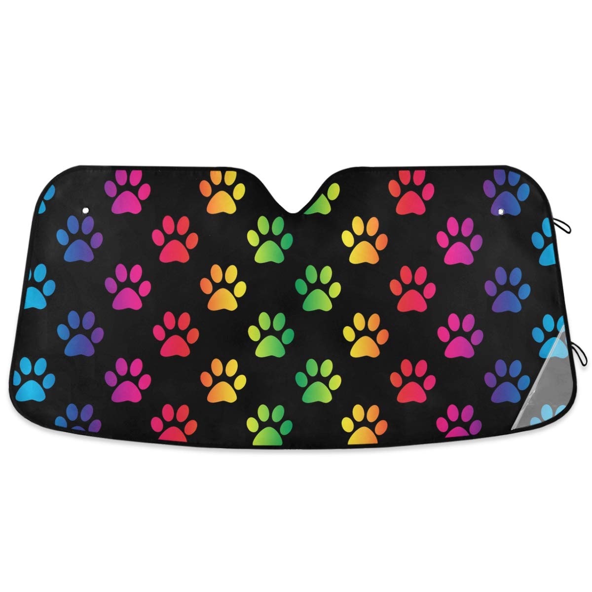 Oarencol Colorful Paw Car Windshield Sun Shade Fun Animals Cat Dog Gradient Rainbow Footprint Foldable UV Ray Sun Visor Protector Sunshade to Keep
