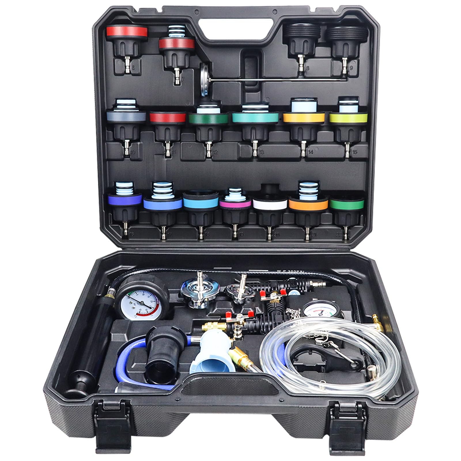VAGNEUS 28 Pcs Universal Radiator Pressure Tester Kit,Coolant Pressure Tester kit with 13 Radiator Adapters,Precise Coolant Leak Detector for All