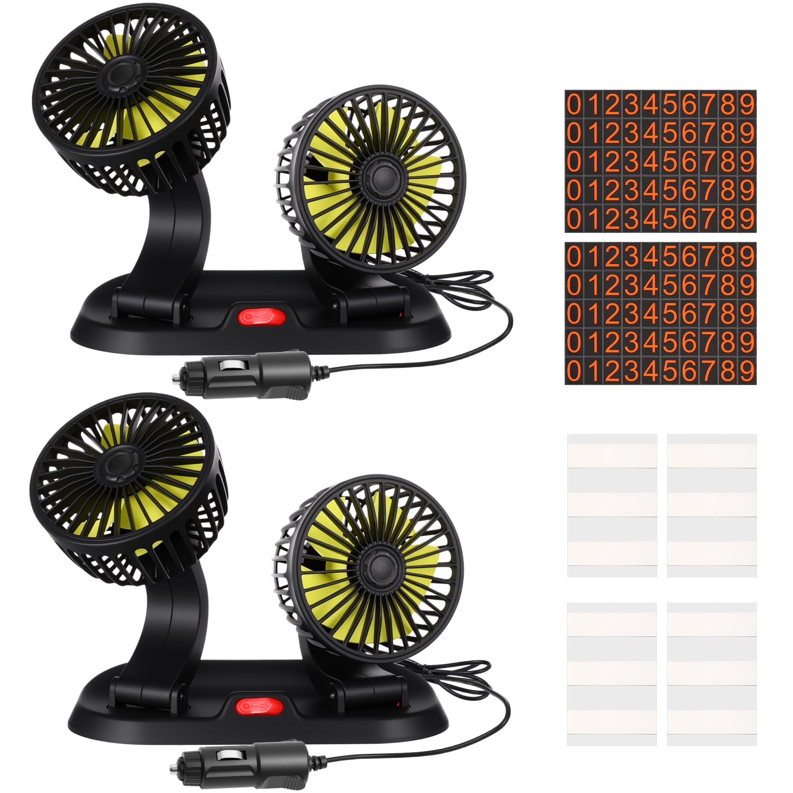 VIHOSE 2 Pcs Dual Head Car Cooling Fan 12v Portable Vehicle Cooling Fan, 2 Speeds Adjustable, 360° Rotating, Cigarette Lighter Powered for Vehicles