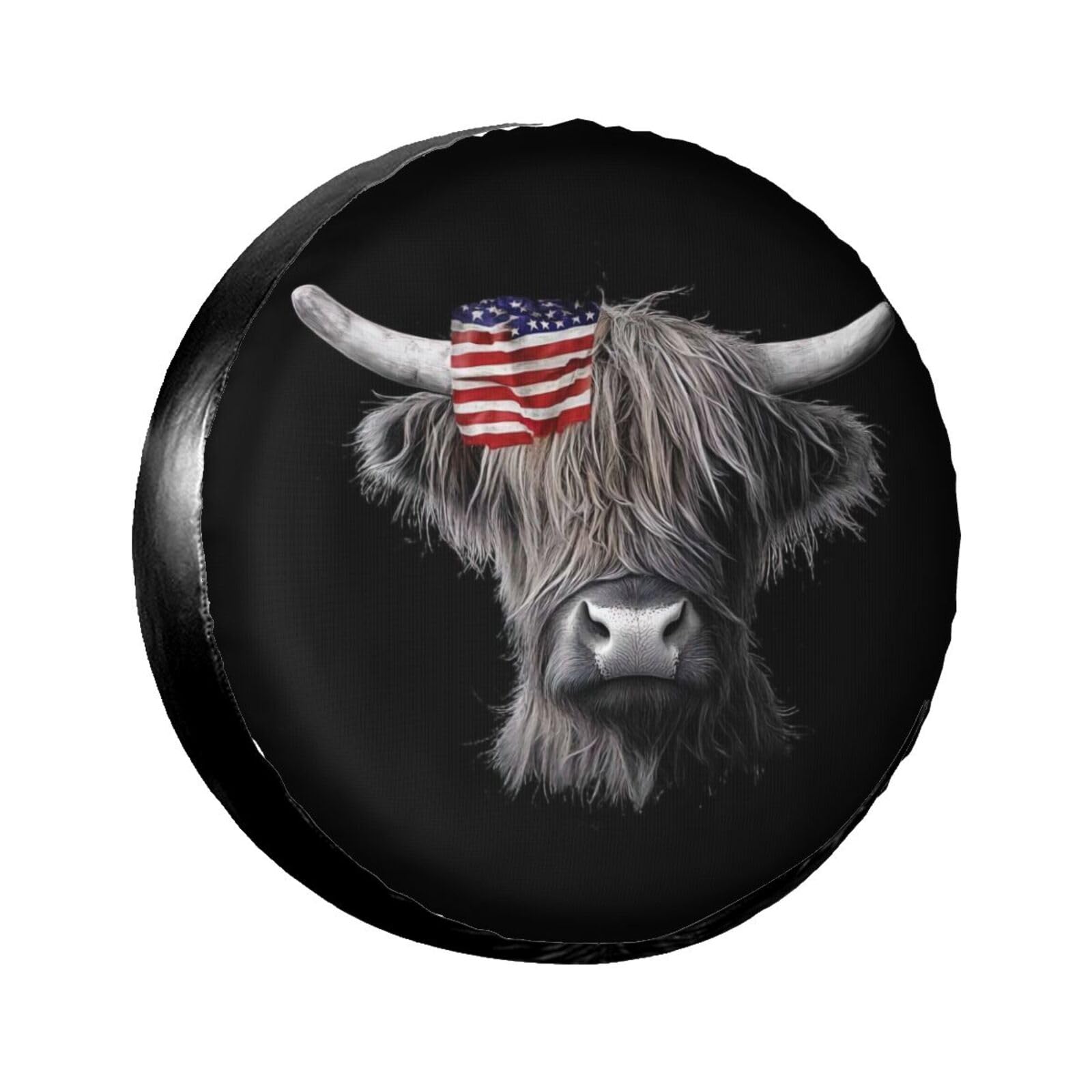 LOJAOGON Highland Cow America Black Spare Tire Cover Wheel Protectors Dust-Proof Wheel Tire Cover Fit Trailer, Rv, Sand Many Vehicle 14inch