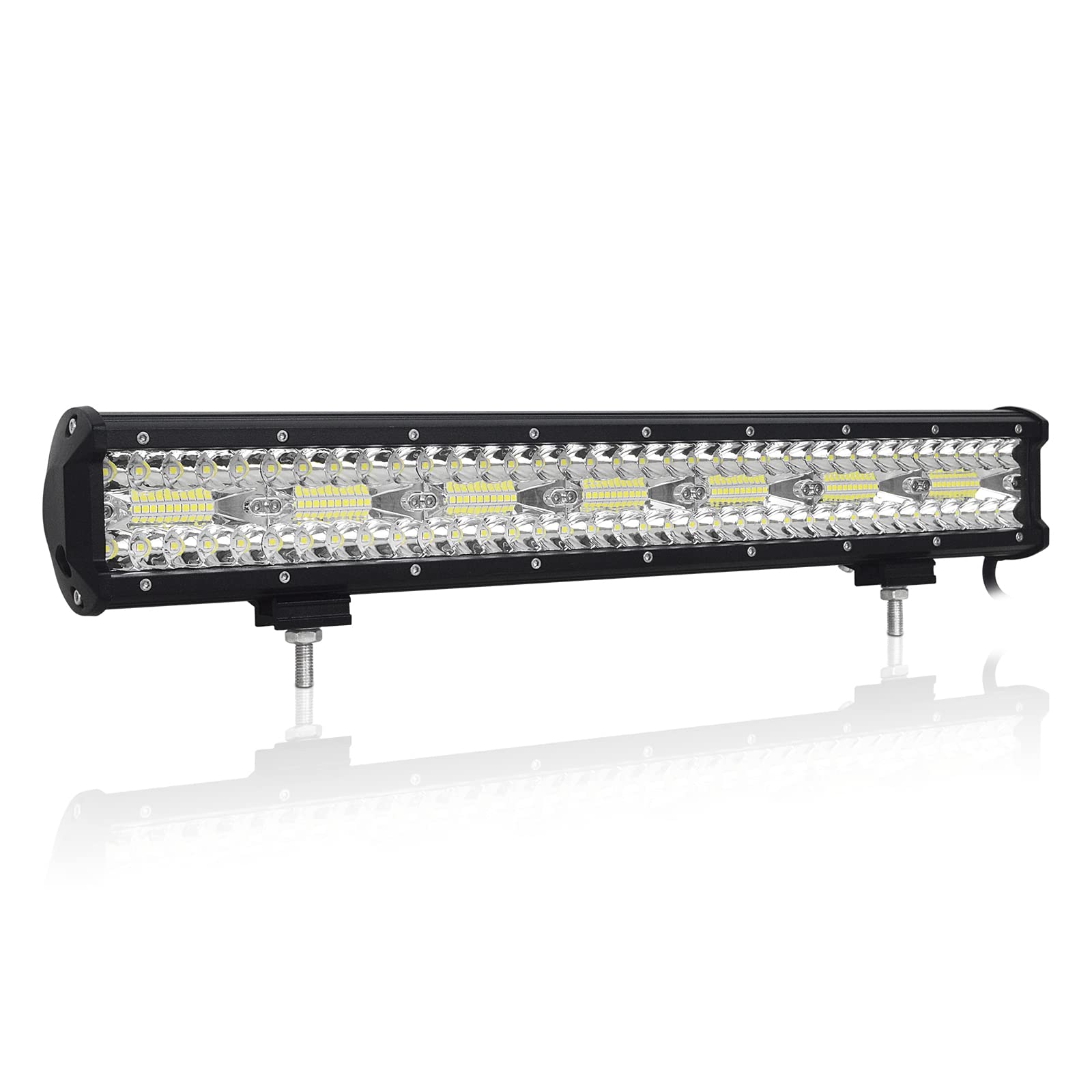 【Super Bright Led Light Bar】The 20 inch led bar apply powerful 420 watts LED chips, emit 6000k bright cool white light, delivering 42000lm, lighting up the entire forward dark road, you can achieve extreme distant and wider vision area 【Excellent Heat Dissipation】This driving lights are made