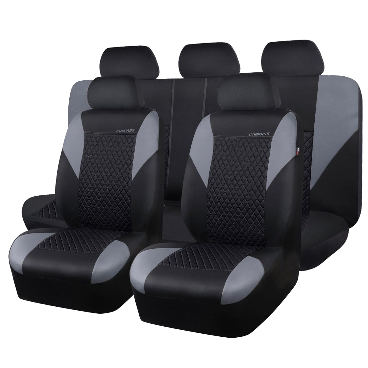 CAR PASS Universal FIT Piping Leather Car Seat Cover, for suvs,Van,Trucks,Airbag Compatible,Inside Zipper Design and Reserved Opening Holes (Full Set,