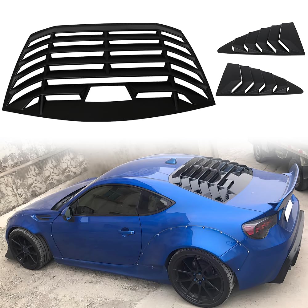 Perfect Fitment: Package Includes: 1x Pair of Side Window Louvers + 1x Rear Window Louver; Instruction is NOT included; These window louvers custom Fits 2013-2016 Scion FR-S & Fits 2013-2020 Subaru BRZ & Fits 2017-2020 Toyota 86 Durable Made: The back window louver is constructed from ABS Plastic, l