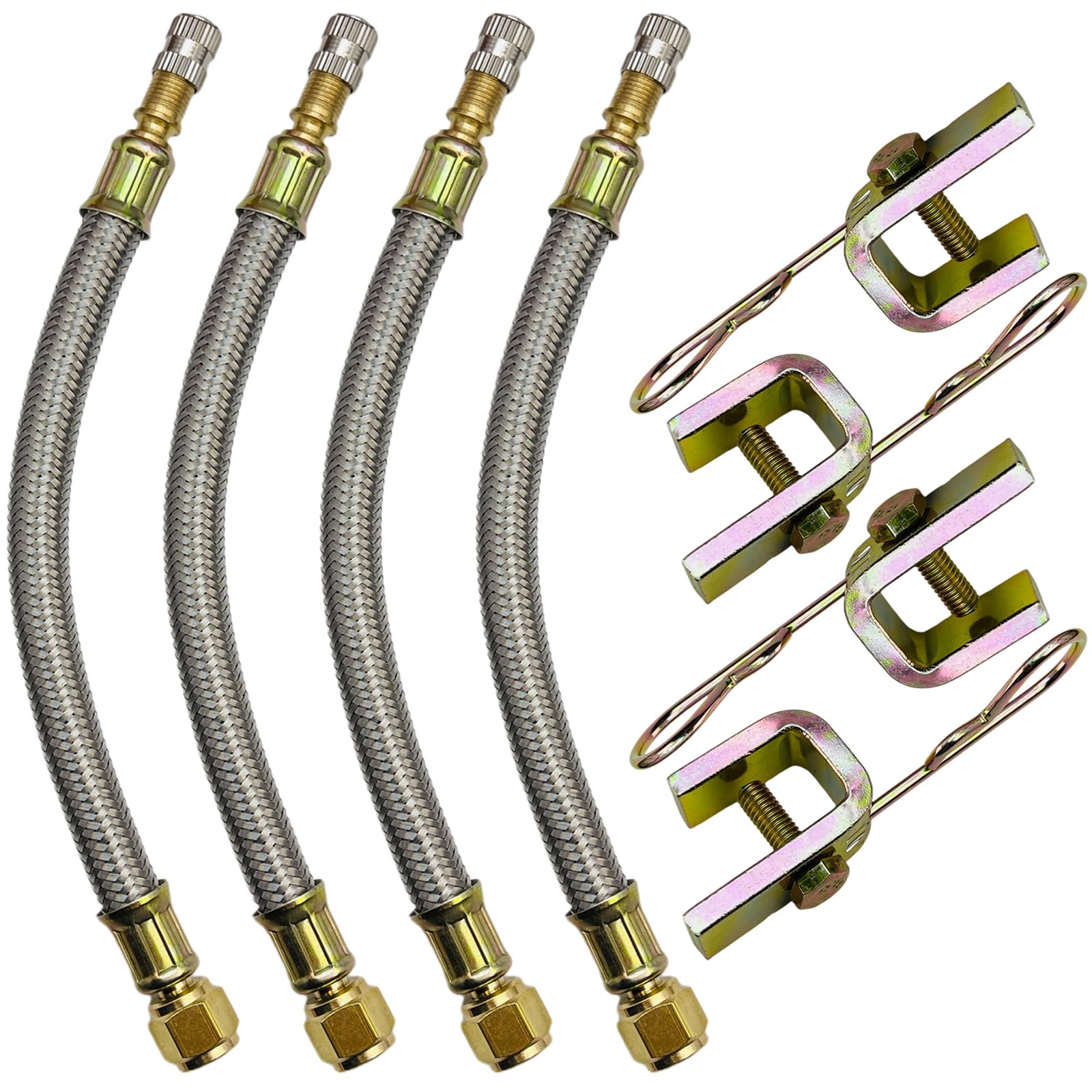 Valve Stem Extenders,4Pcs 7"/180mm Flexible Hexagon Base Valve Stem Extensions,Stainless Steel Tire Extenders Braided Valve Extenders Adaptors