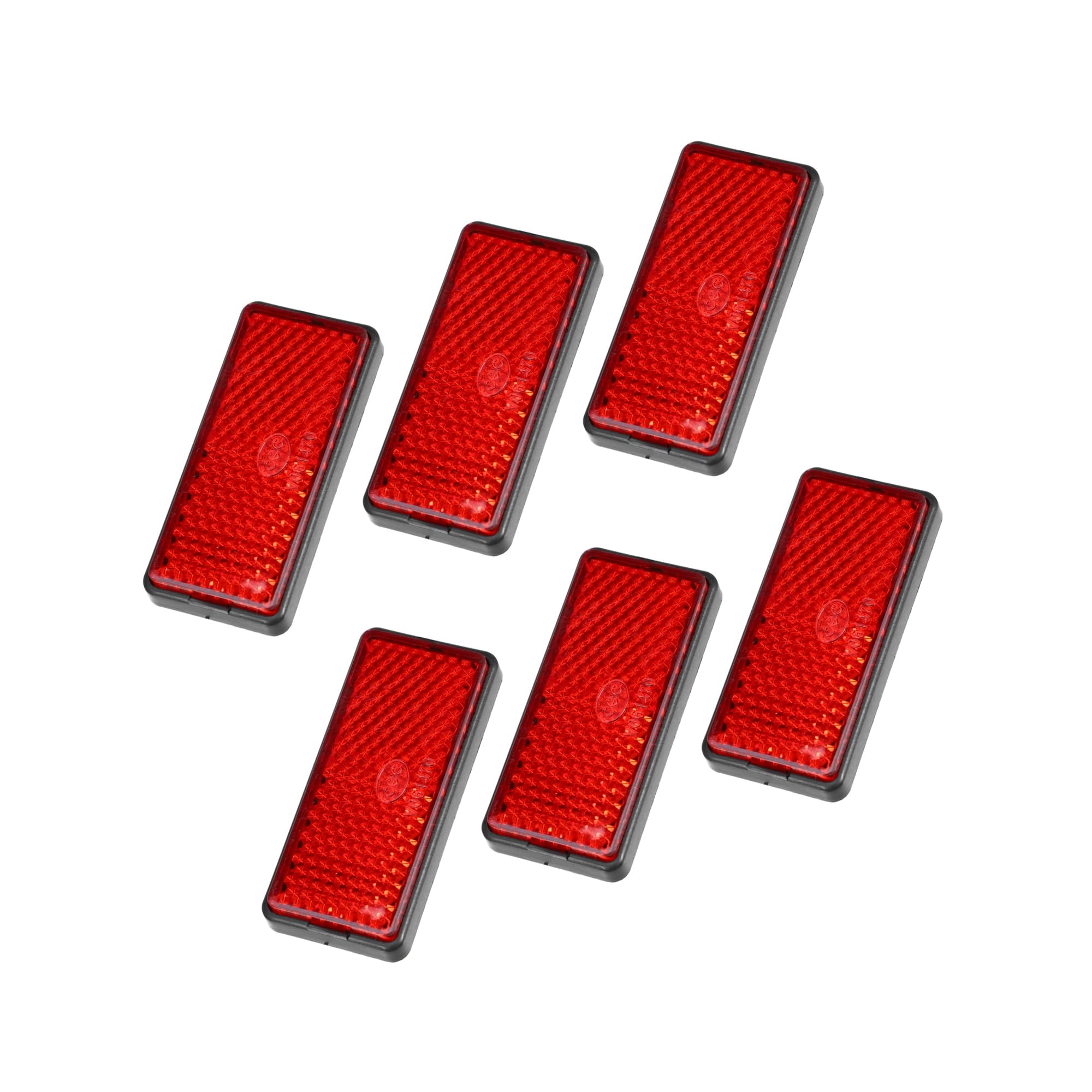 Partuto 6 Pcs Rectangular Stick-on Safety Spoke Reflective Self Adhesive Reflector for Gate Posts Cars Trailer Motorcycle Trucks Boat Bicycle Bike Red