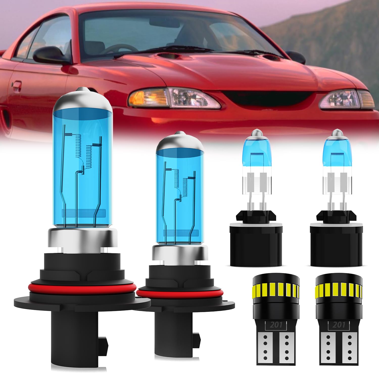 【Fit for Ford Mustang Light Bulbs】LECCIBUB halogen headlights and license plate lights are perfectly fit for Ford Mustang 1994 1995 1996 1997 1998 1999 2000 2001 2002 2003 2004.Reduce the risk of error warnings,radio static or flickering.You don't require additional encoders.The headlights Licen