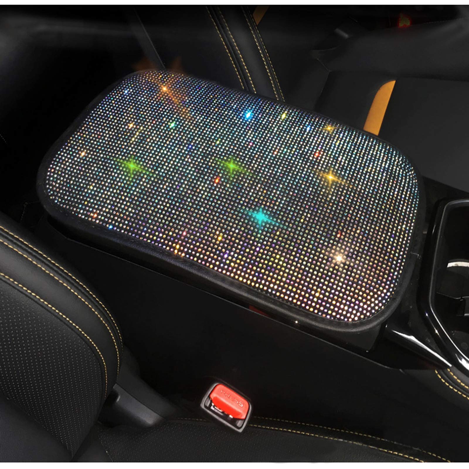 FUNOJOY Car Armrest Cover for Women Colorful Diamond Rhinestone Bling Car Accessories Interior Car Decor for Women