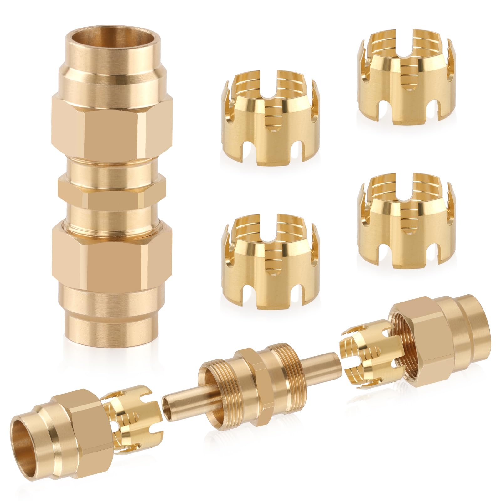 HASAOMOI Brass DOT Air Brake End Fitting,2PCS 3/8” OD Union Tube with 4 PCS Brass Fitting Sleeve Tube, Air Brake Hose Fittings for Air Brake
