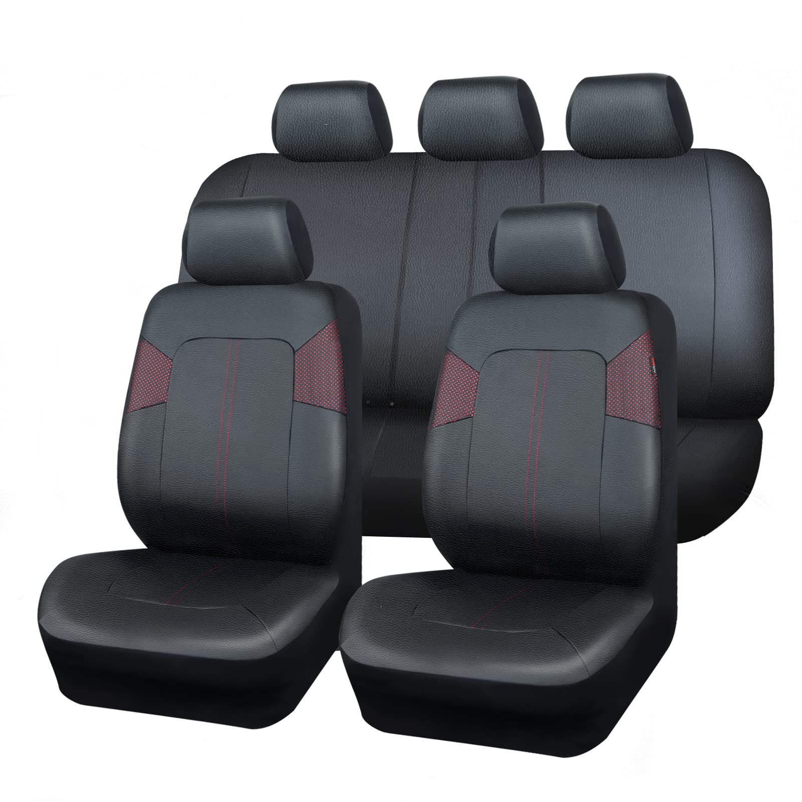 CAR PASS Deluxe Faux Leather Perforated Car Seat Covers Full Set, Breathable Waterproof Automotive Seat Covers,Airbag Compatible Universal Fit for