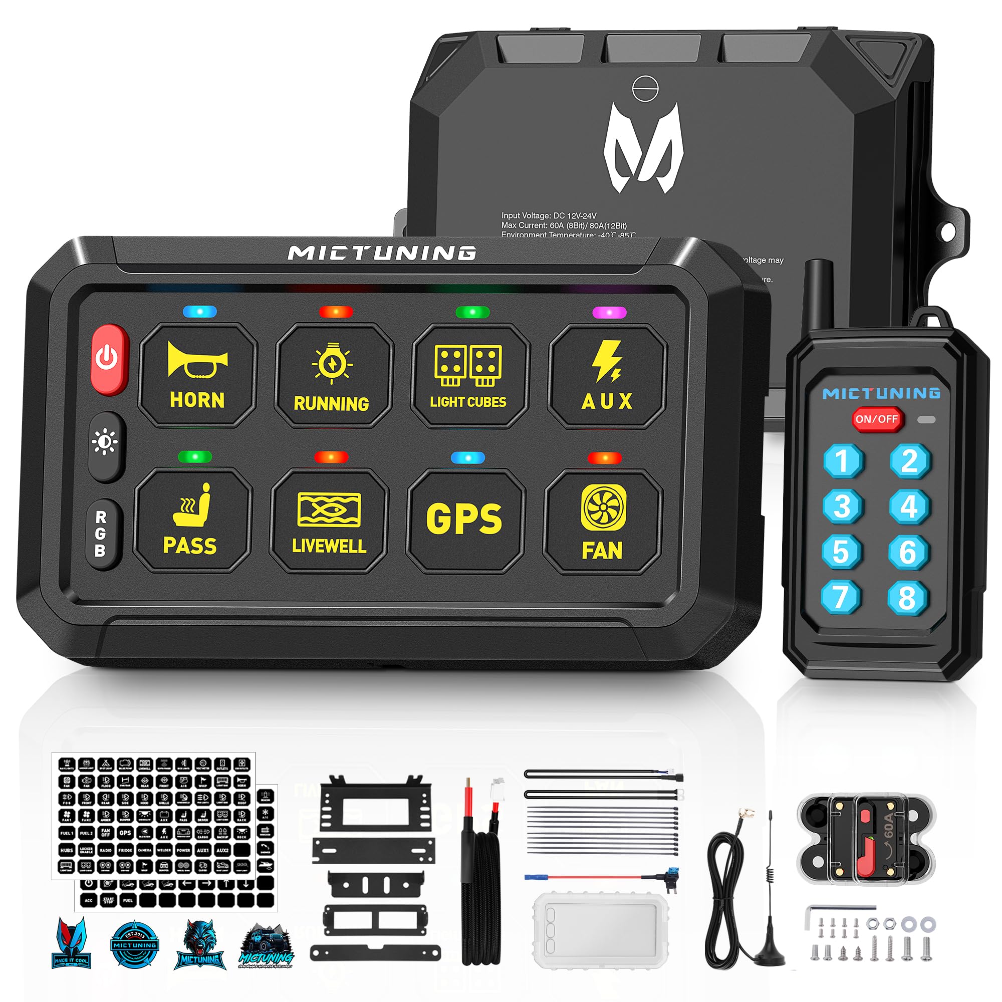 Extended Wireless Control - MICTUNING switch panel comes with an RF remote—Operate from up to 230 feet away. One remote can pair with up to 5 panels for broad control. Alternatively, one panel can connect to 5 remotes for multi-user access. The remote's magnetic backing allows for secure attachmen