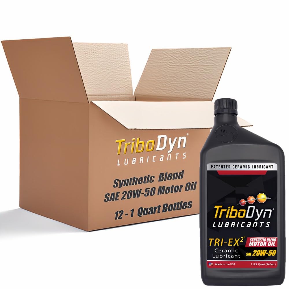 TriboDyn TRI-EX2 20W-50 Synthetic Blend Motor Oil with Patented Ceramic Coating, Heat Resistance, Wear Protection, Outperforms Specialty Oils in Film