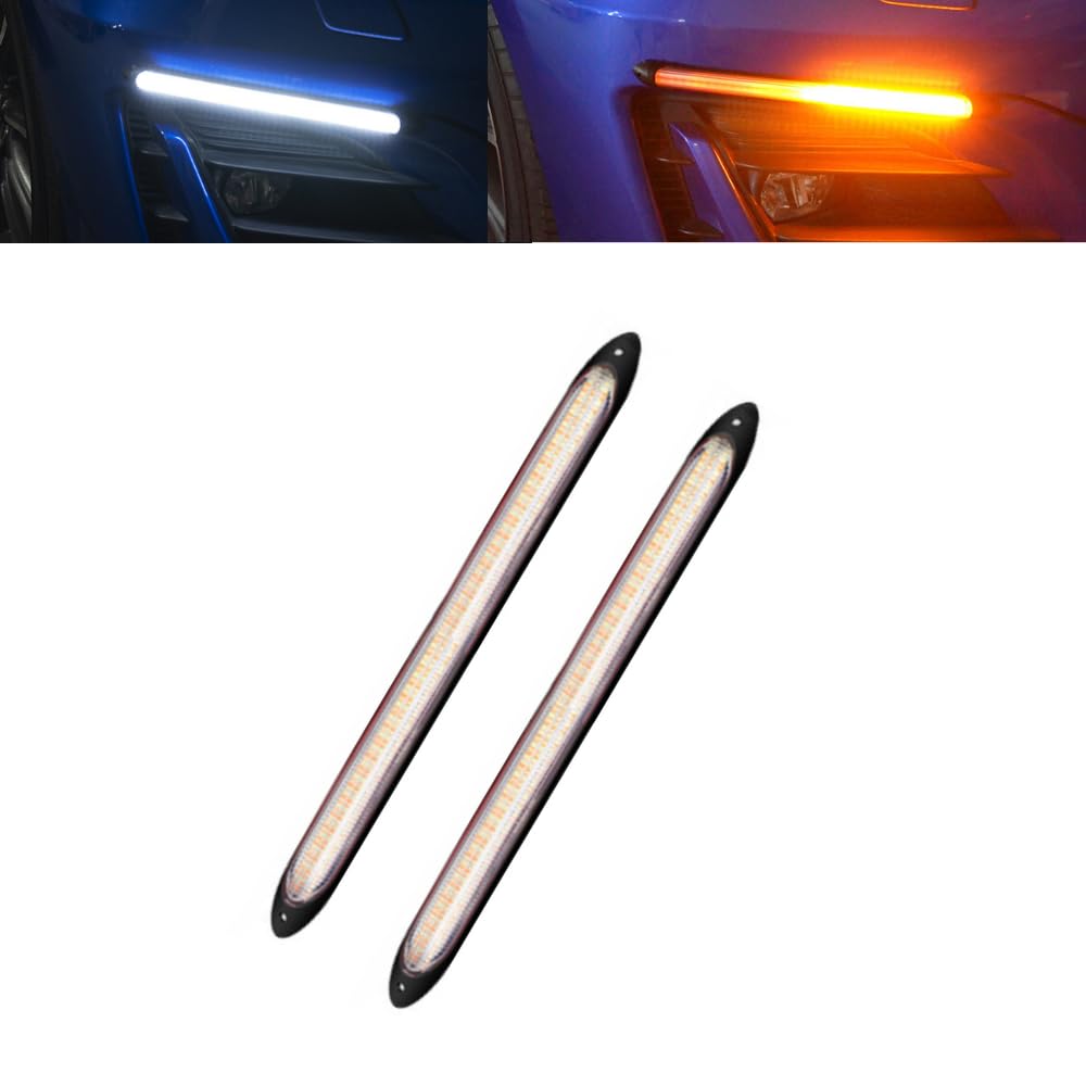 Yolu 2Pcs Flexible LED Daytime Running Light with Starter Scanning Dual-Color Streaming Turn Signal Indicator Light Universal fit 12V vehicles (11.4")