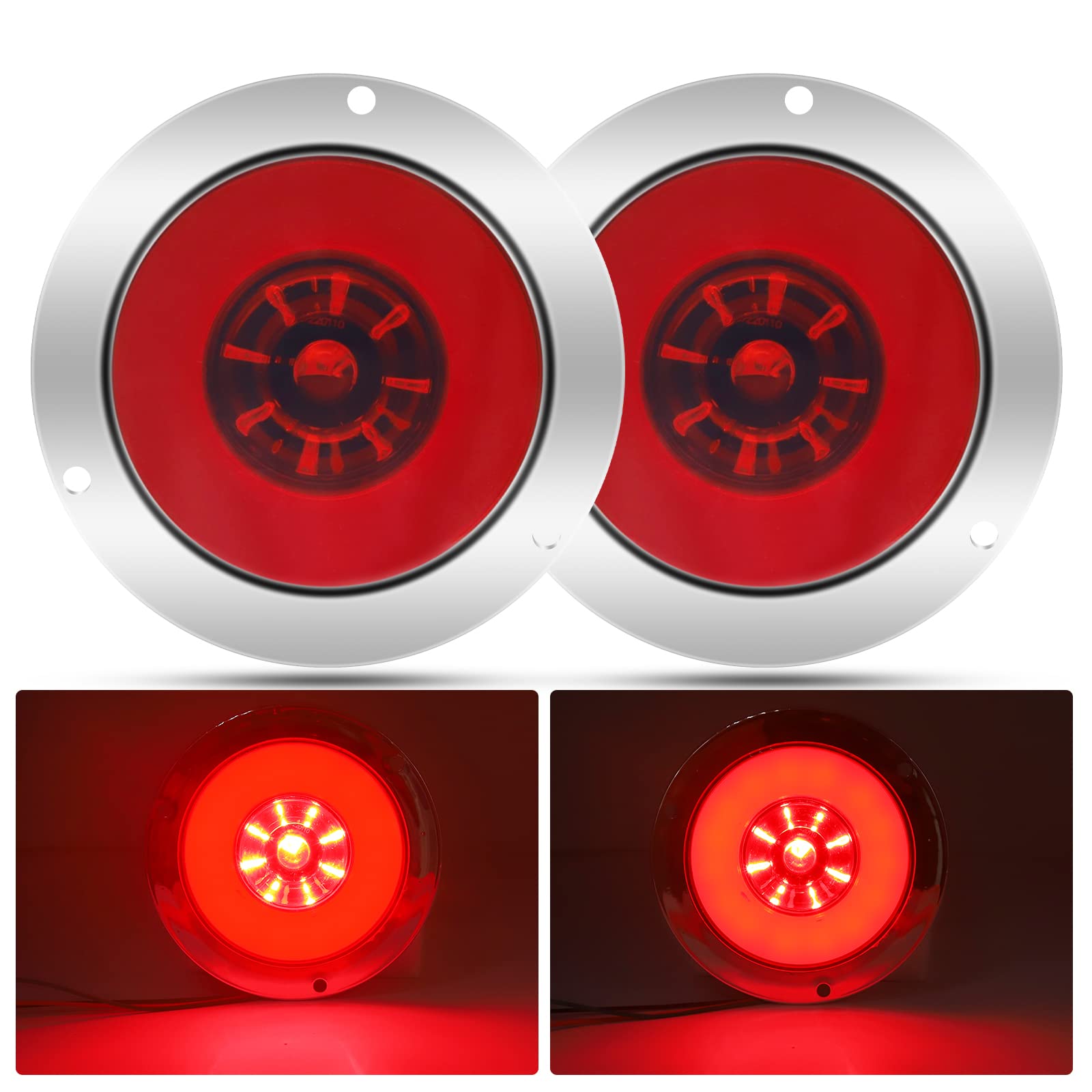 NWpangu LED Round Tail Lights, 24-LED Flush Mount Brake Stop Tail Lights with Chrome for Truck Trailer Camper Van RV Boat, Red, 2PCS.