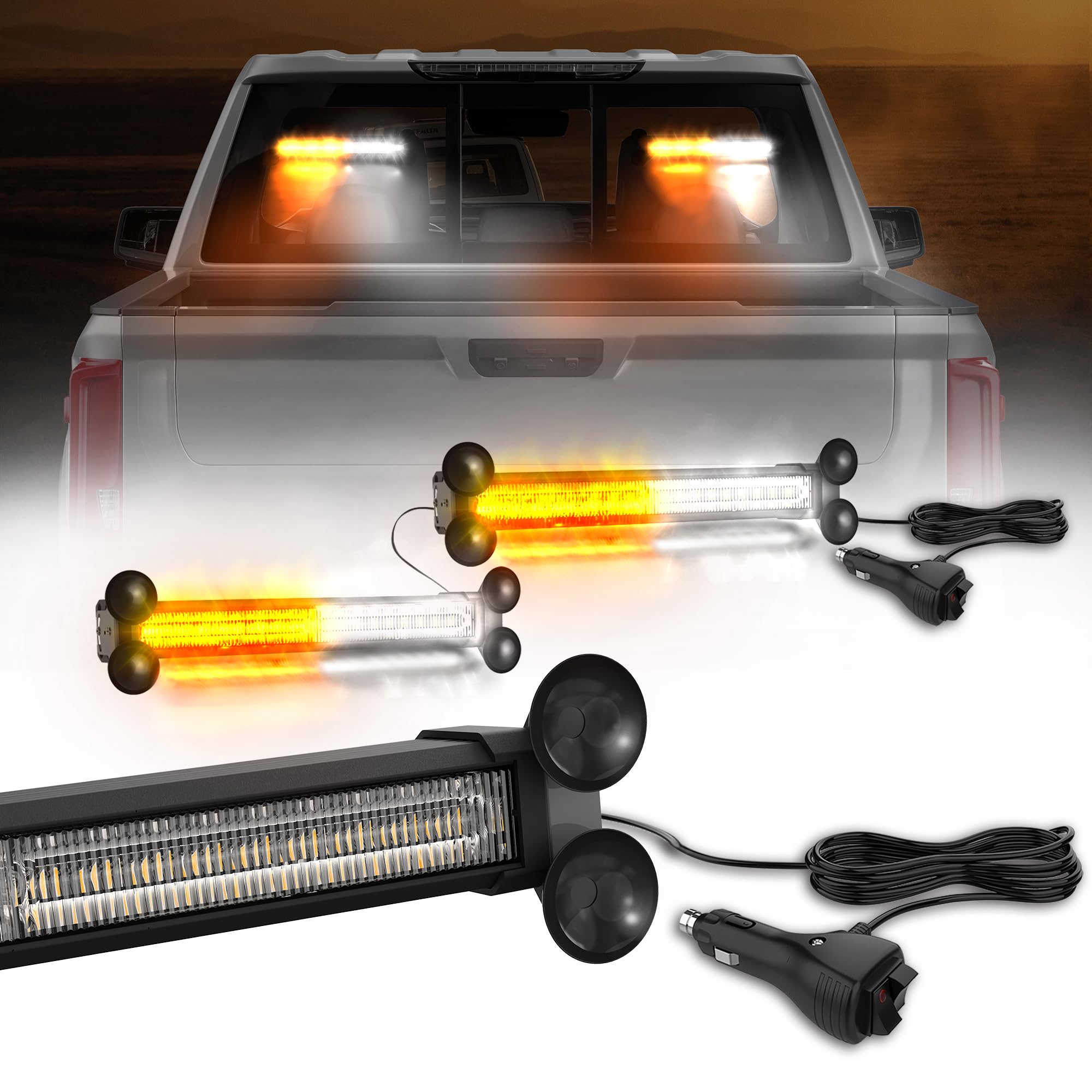 Super Visibility: Elevate your truck's safety with our 4-in-1 traffic advisor strobe light bar, 96 LED with wide optic lenses,offers a super bright light output.Brighter and more effective than standard Led Strobe Lights, Bright even in the daytime. With 26 flash modes, they ensure high Recognition