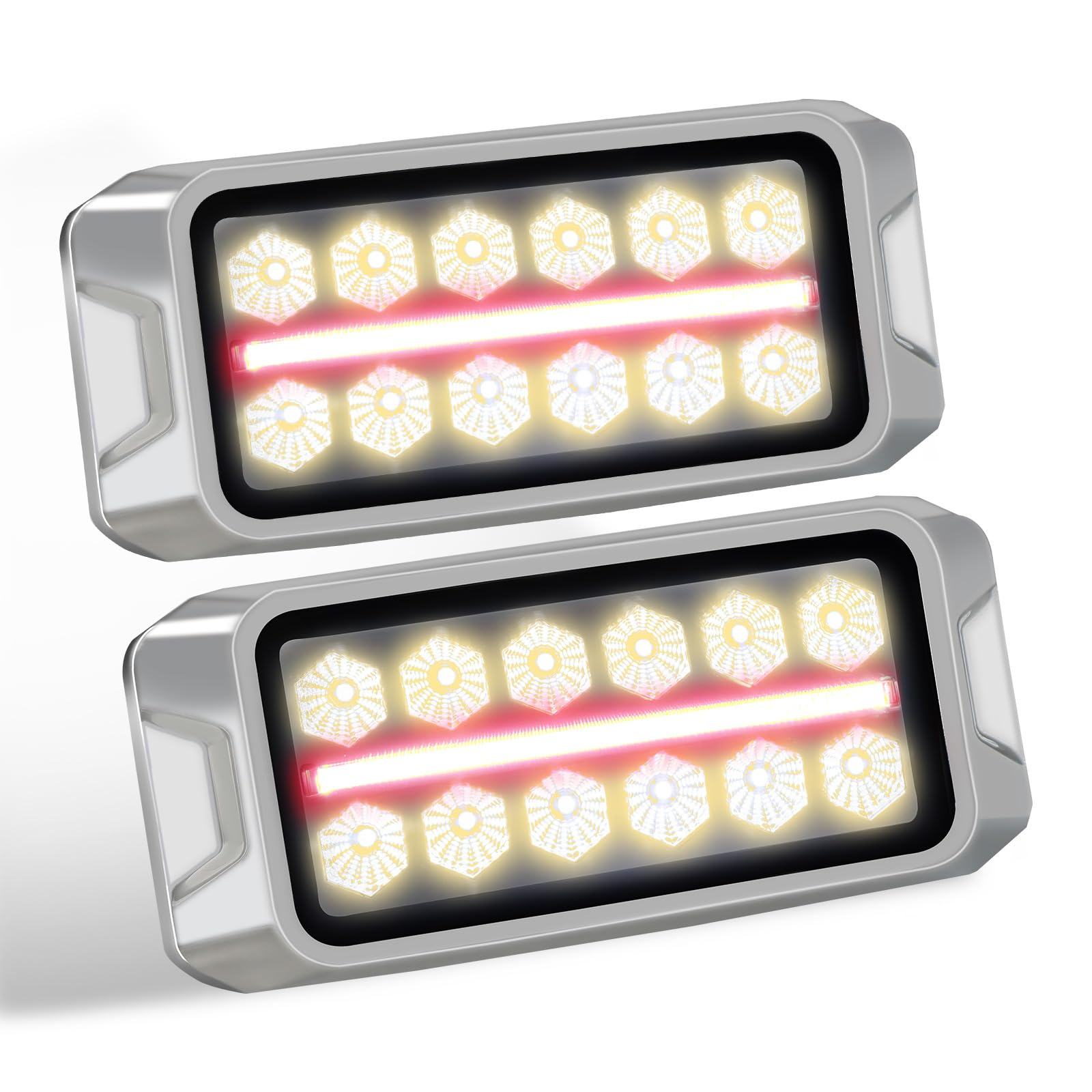【2 IN 1 WARNING LIGHTS】The 7" x 3" strobe and position lights boast an ultra-compact design;ideal for fire and EMS vehicles;the lights feature 40° spot optics which can be used as warning or scene lighting 【ALUMINUM BASE AND CHROME COVER】Agrieyes 2 in 1 Amber strobe light includes a stu