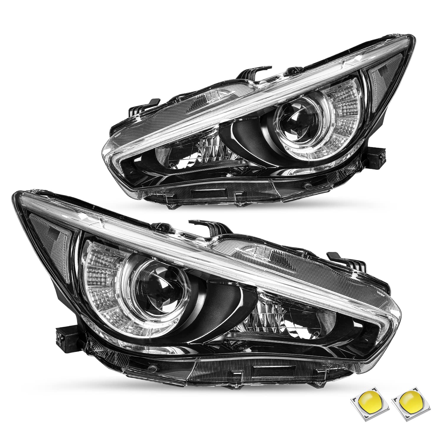 【VEHICLE COMPATIBILITY】OEM style halogen headlights Compatible with 2014 2015 2016 2017 2018 2019 2020 2021 2022 Infiniti Q50 without AFS (Adaptive Front Lighting System Model). LED Bulbs are Included. OEM Part Number: 260604HB0B, 260604HB0A, 260104HB0B, 260104HB0A, 260106HH7A, IN2502157, IN2502