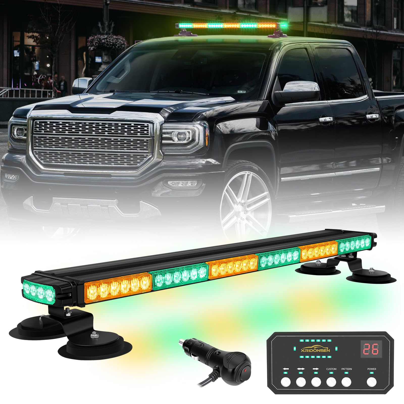 XRIDONSEN 28.4" 80 LED Roof Top Strobe Lights Amber Green Emergency Lights Warning Flashing Safety Beacon Double Side Traffic Advisor Lights Magnetic