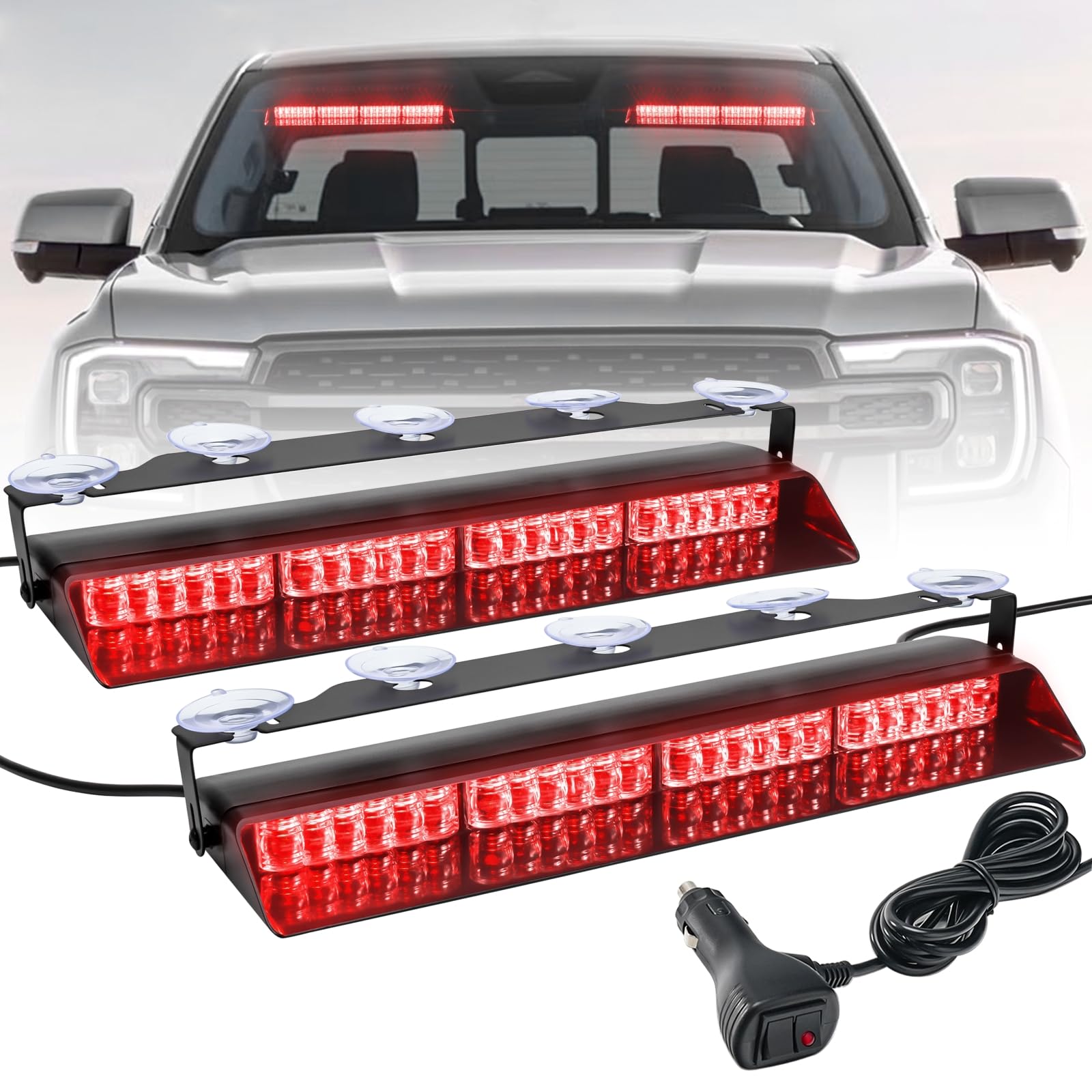 ELECHOI Red 2 in 1 Emergency Dash Strobe Light Bar, Front/Rear 48LEDs Interior Windshield Visor Safety Flashing Warning Hazard Lights for Trucks