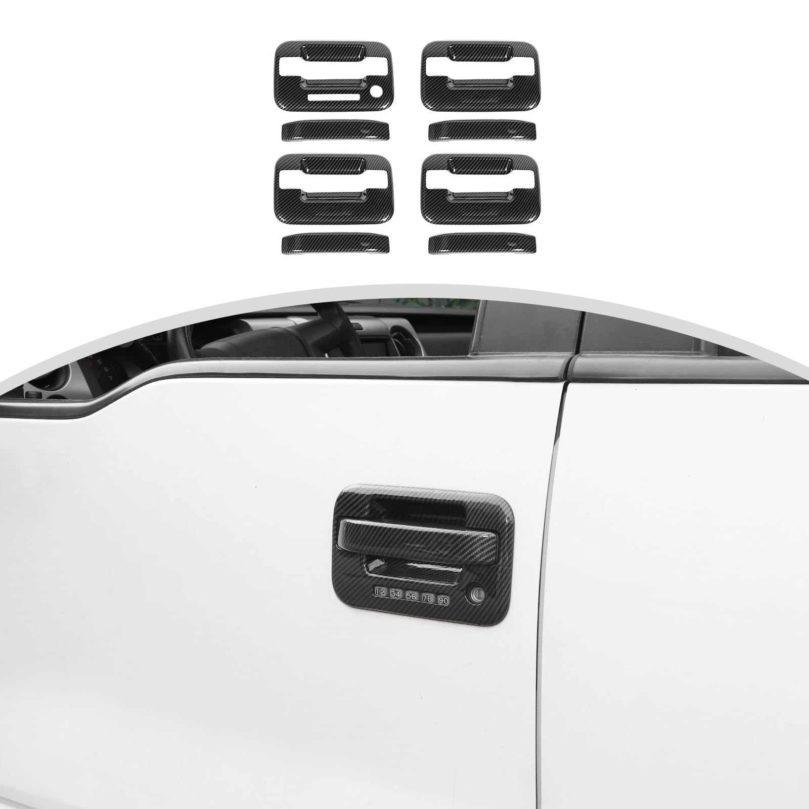 CheroCar Carbon Fiber Door Handle Cover Trim Kit Compatibility with Ford F150 Raptor 2009 2010 2011 2012 2013 2014 8PC Exterior Door Handle Decorative