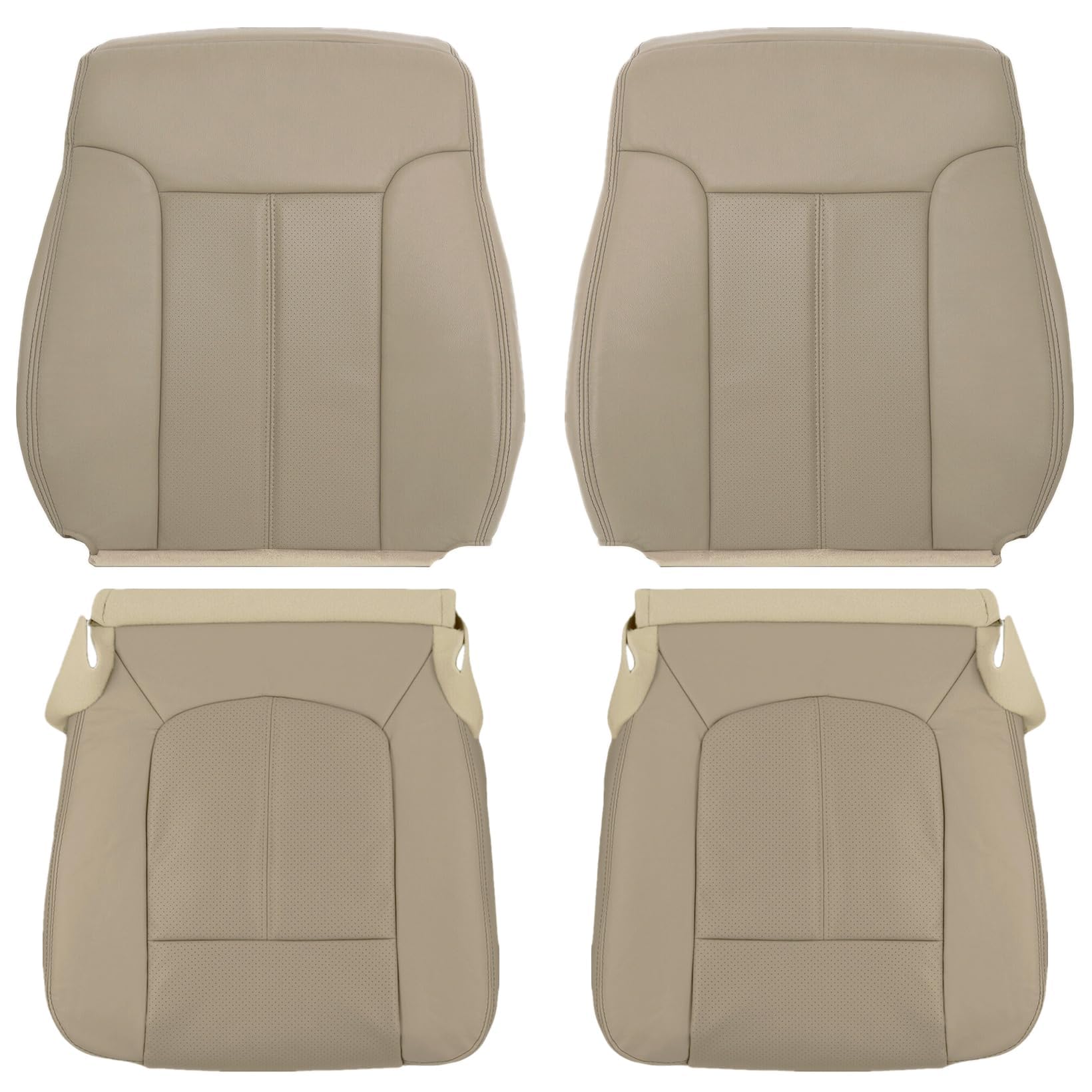 NLQR Driver and Passenger Side Bottom and Top Lean Back Replacement Perforated Leather Seat Covers Tan Compatible with Ford F250 F350 F450 F550 Lariat