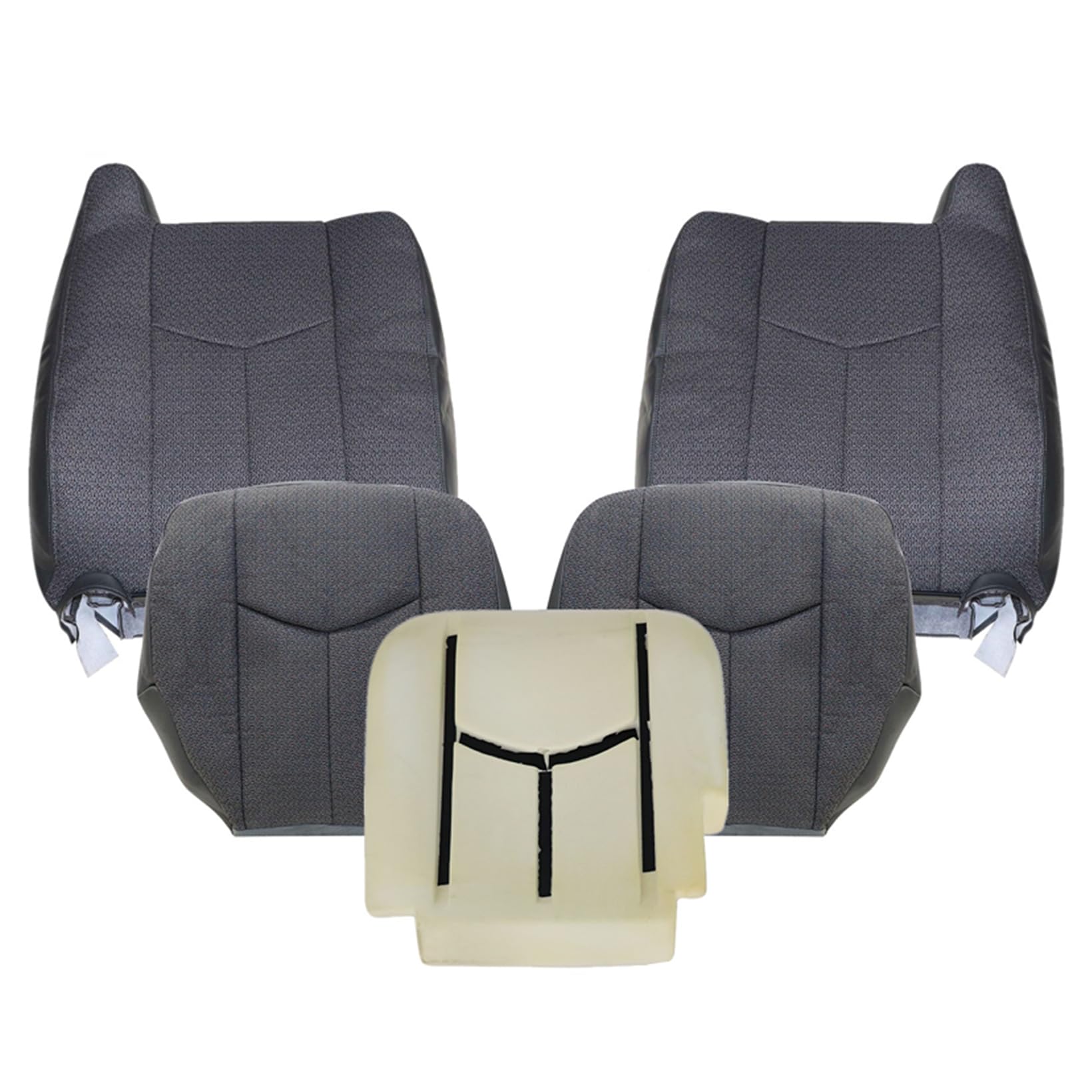 Compatibility: Compatible with Chevy Silverado GMC Sierra from 2003 to 2007. Package includes two bottom seat cover replacement+two top seat cover replacement+one driver bottom seat foam cushion. Quality: Our technicians will ensure the products have passed the suitability and material tests to ensu