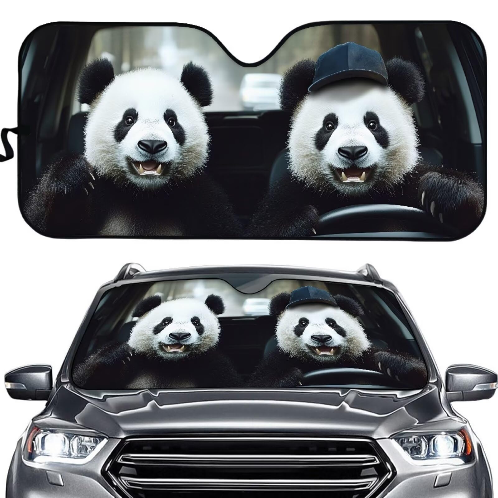 BIGCARJOB Funny Panda Car Shades for Front Windows,Universal Windshield Sun Shade Animal Cute Panda Auto Sunshade Travel Car Front Window Protective