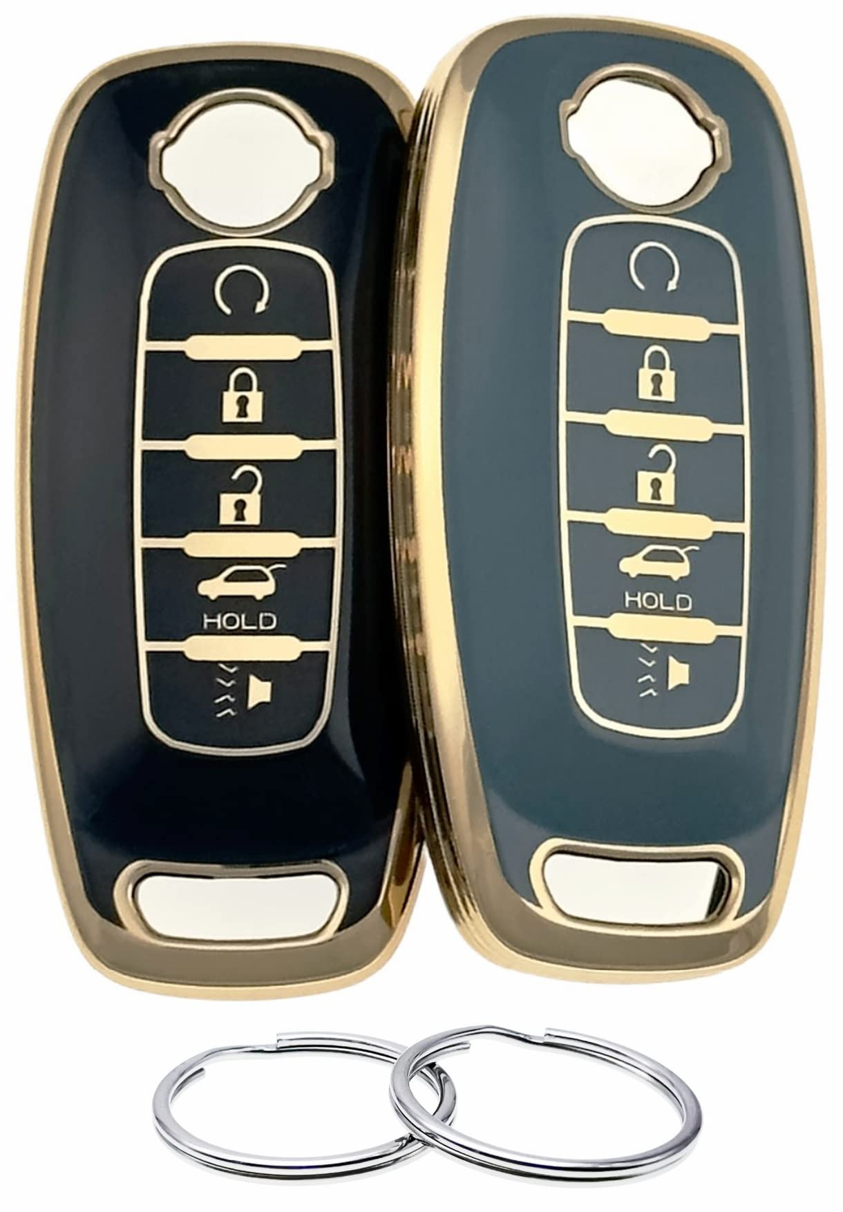 REPROTECTING Silicone Rubber Key Fob Cover Compatible with Nissan Pathfinder Rogue Kicks (5 Buttons/TPU, Black Grey)