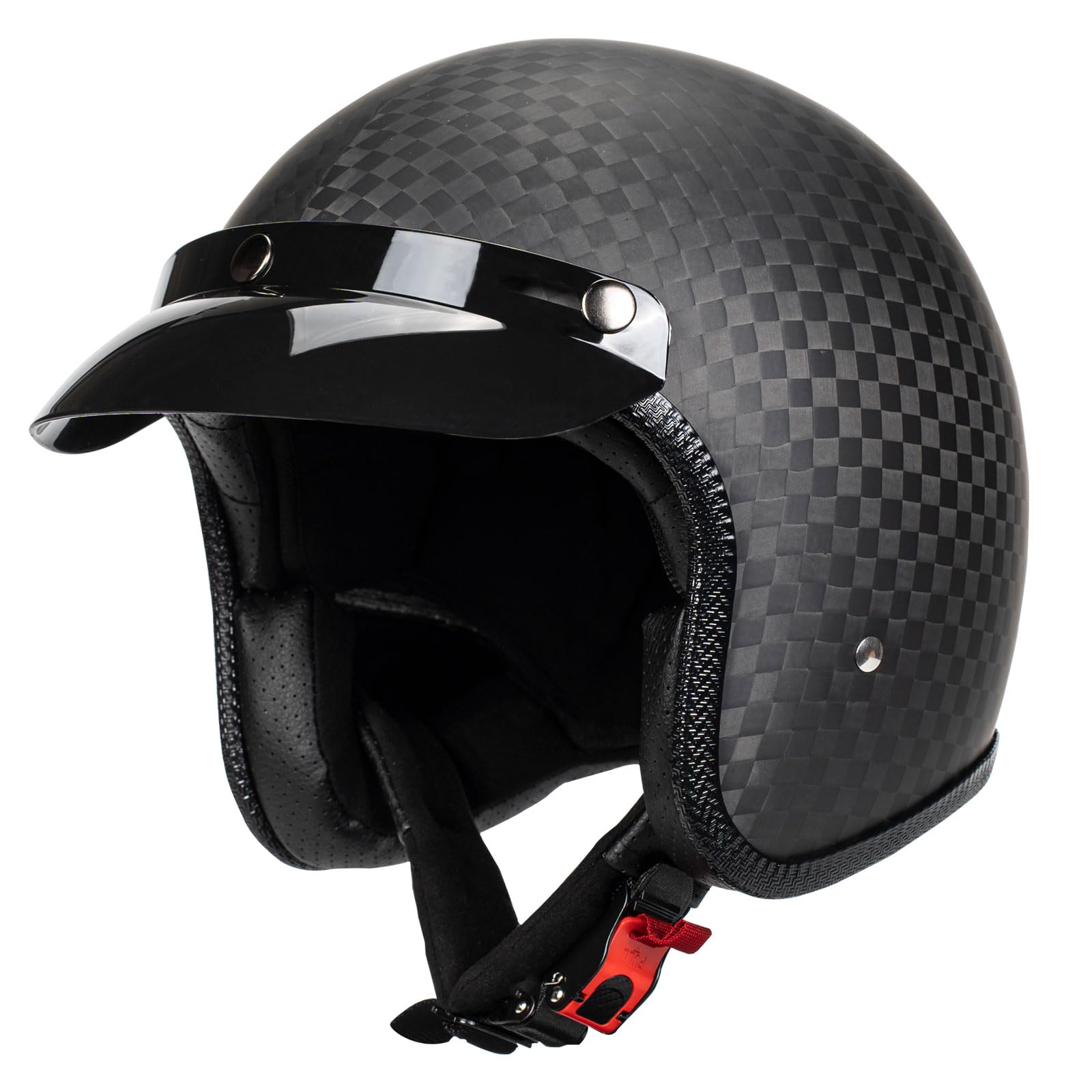Motorcycle 3/4 Open Face Helmet Lightweight Carbon Fiber Cafe Racer Vintage Helmets DOT Approved