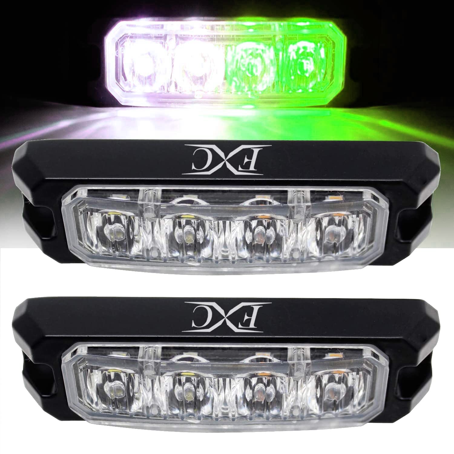 FXC 2pcs 4-LED Flashing Strobe Lights for Car SUV Pickup Truck Van Vehicle POV LED Grille Light Emergency Beacon Caution Hazard Warning Lights Green/