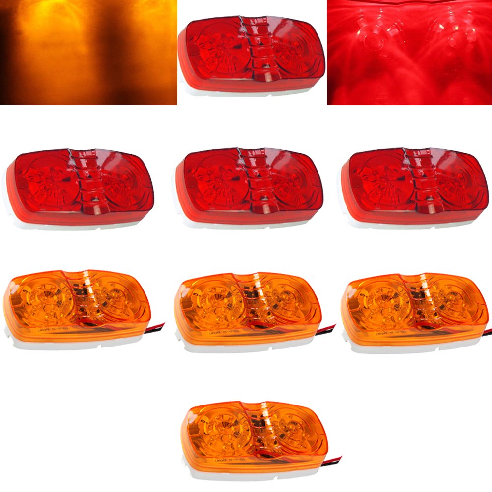 NEW SUN 8 Pcs 4x2 Inch Trailer RV Marker LED Light, Bullseye/Tiger Eye/Double Bubble Clearance Light, 10 LEDs, Amber/Red 12V Rectangular LED Side