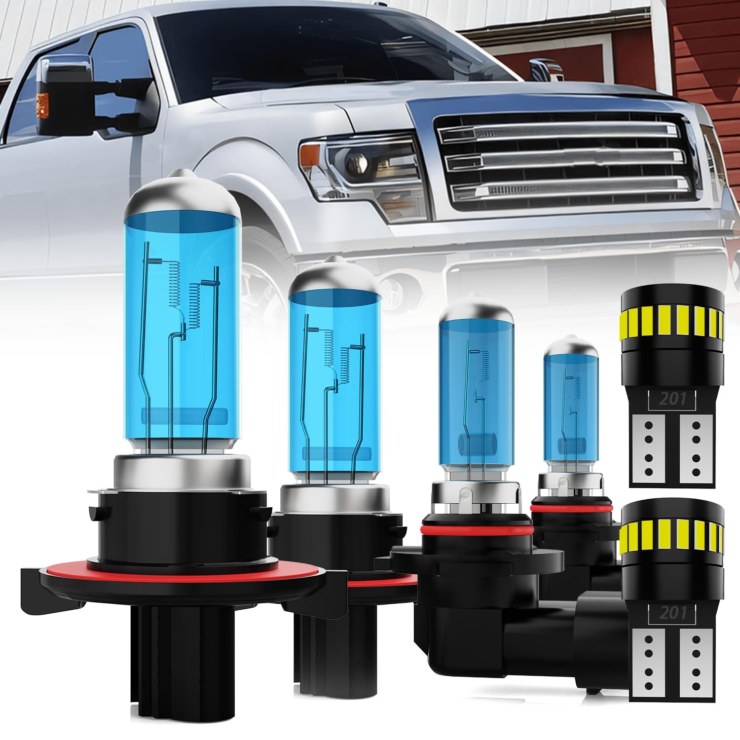 LECCIBUB Headlight Bulbs License Plate Lights Fit For Ford F150 2004-2014 Light Bulbs, 9008 High Low Beam + 9145 Fog Lights Halogen Light Bulb +