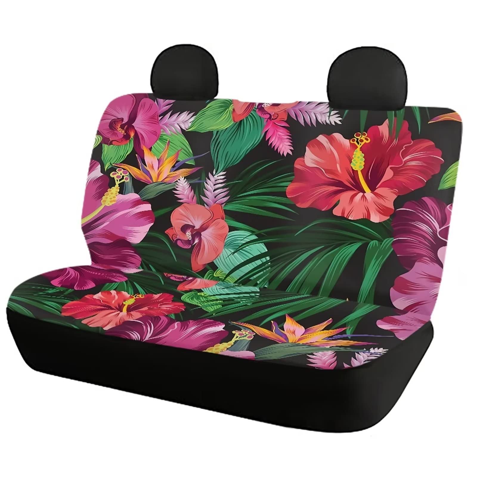 Forchrinse Hawaiian Hibiscus Palm Leaves Rear Bench Seat Cover for Cars,Trucks,SUVs,Sedans Rear Bench Seat Cover Set of 2