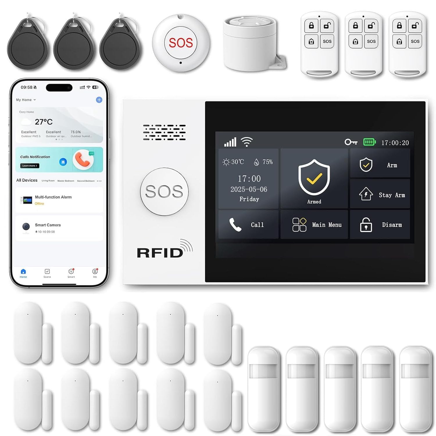 WiFi Wireless Alarm System for Home Security - 24/7 Protection Smart Home Devices 4.3" Touch Screen, GSM/4G+WiFi, App Instant Alerts, No Monthly Fee,