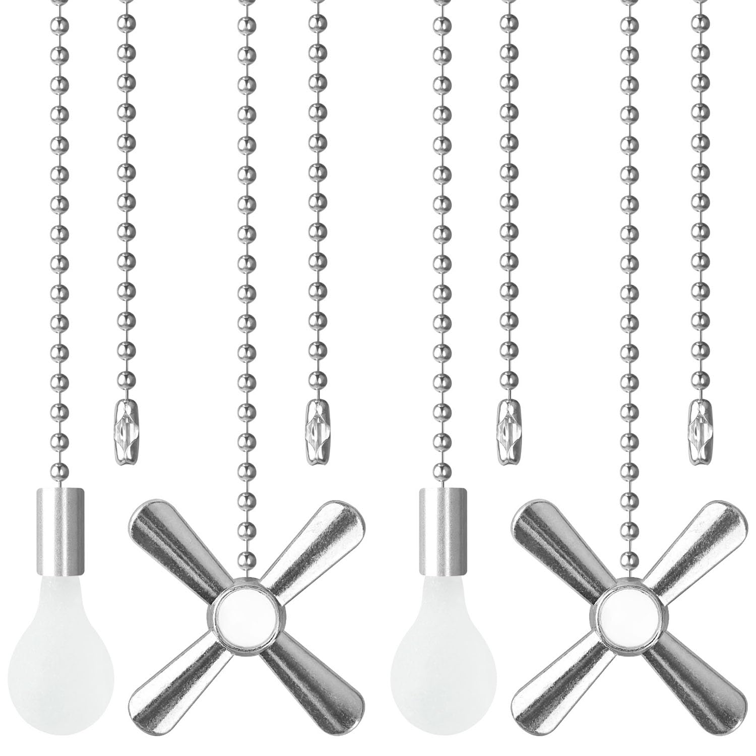 SHIFANQI Ceiling Fan Pull Chain, 4 Pack 3D Bulb&Fan Pull Chain Extension, 12 Inches Decorative Chain Pulls Pendant for Ceiling Light Fan Lamp, Beads