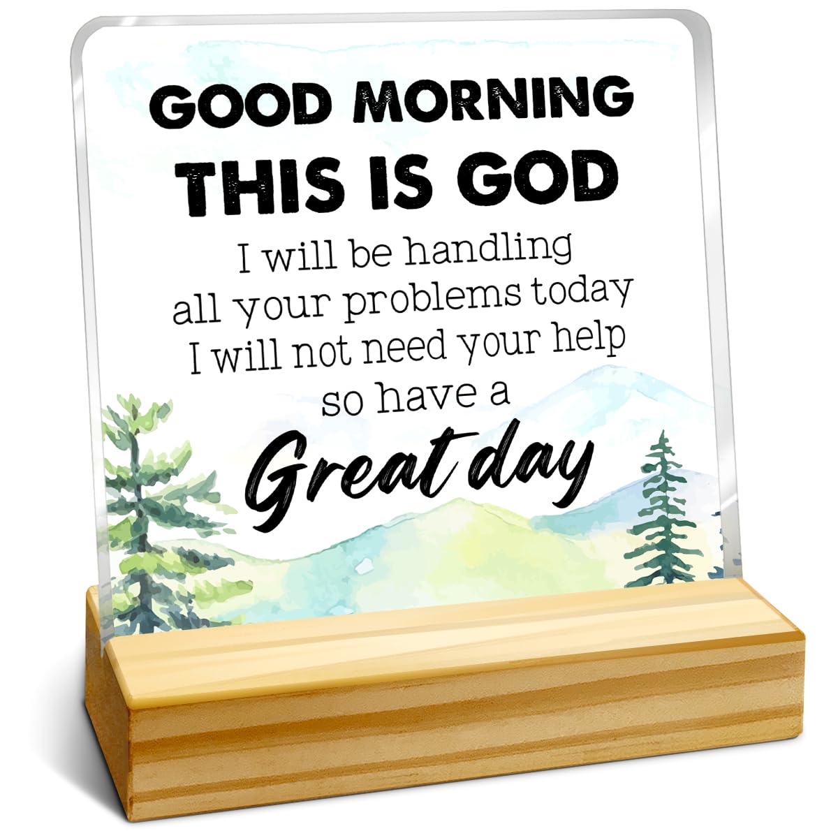Good Morning this is God Acrylic Desk Plaque,Catholic Gifts,Inspirational Bible Verses Quotes for Bedroom Office,Funny Christian Wall Art Decor with