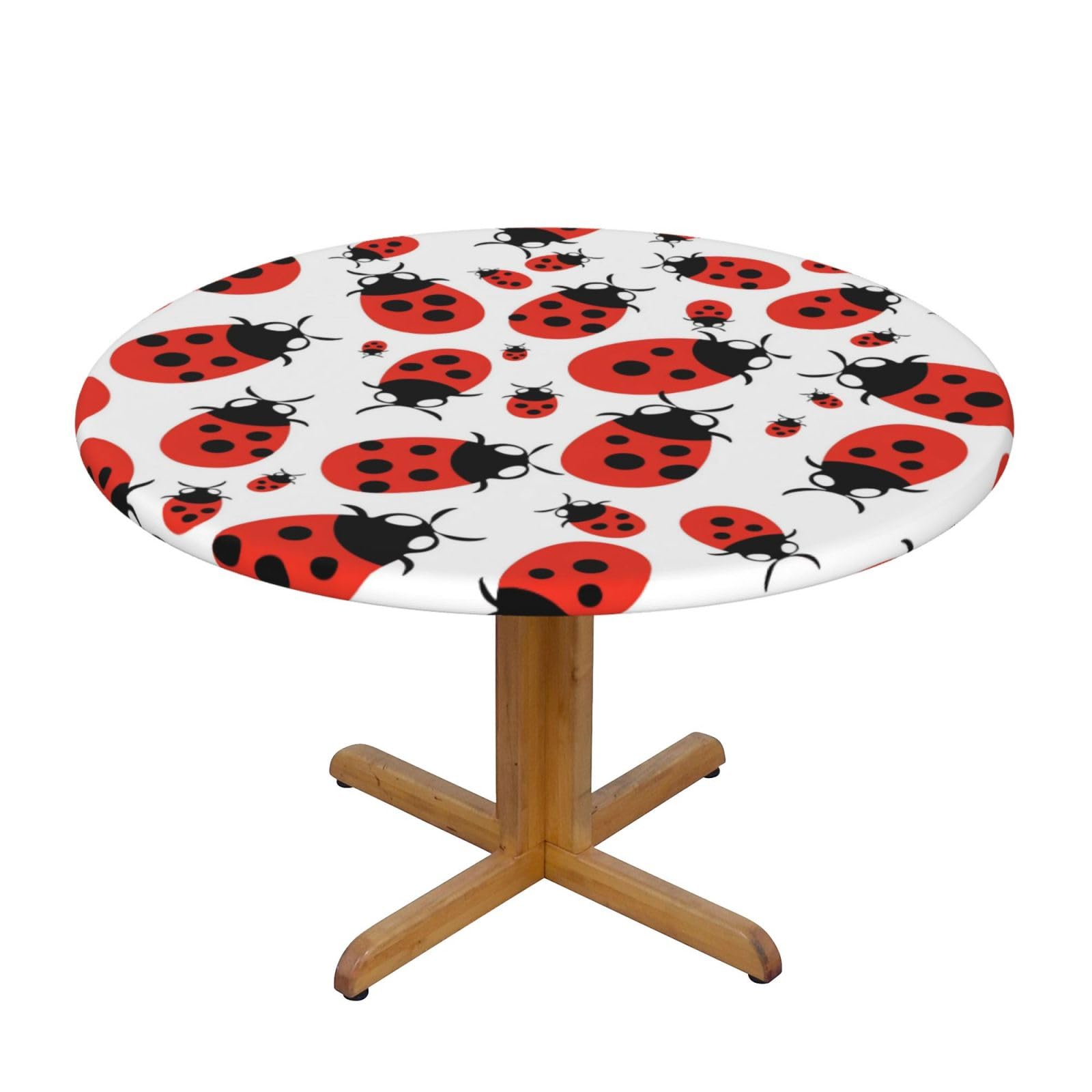 Ladybug Cartoon Round Tablecloth with Elastic Edge M-54 Inches, Washable Decor Table Covers for Kitchen Dining Outdoor Parties (Fit for 40"-44"/ 45"-