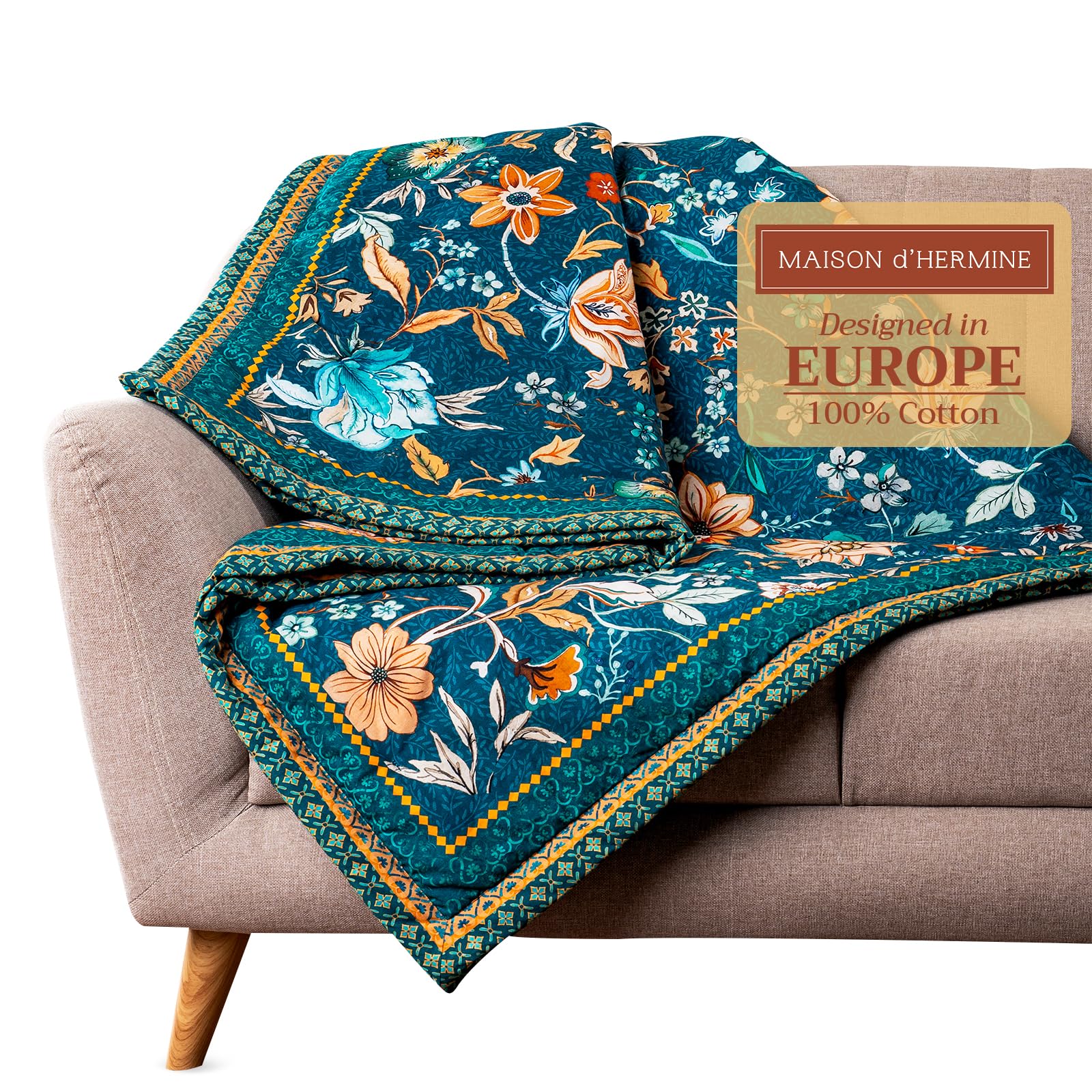 Maison d' Hermine Throw Blanket for Couch Lightweight Soft Warm Breathable Cotton Throw Blankets for Bed Girls Boys Women Men Room Gifts for Mothers
