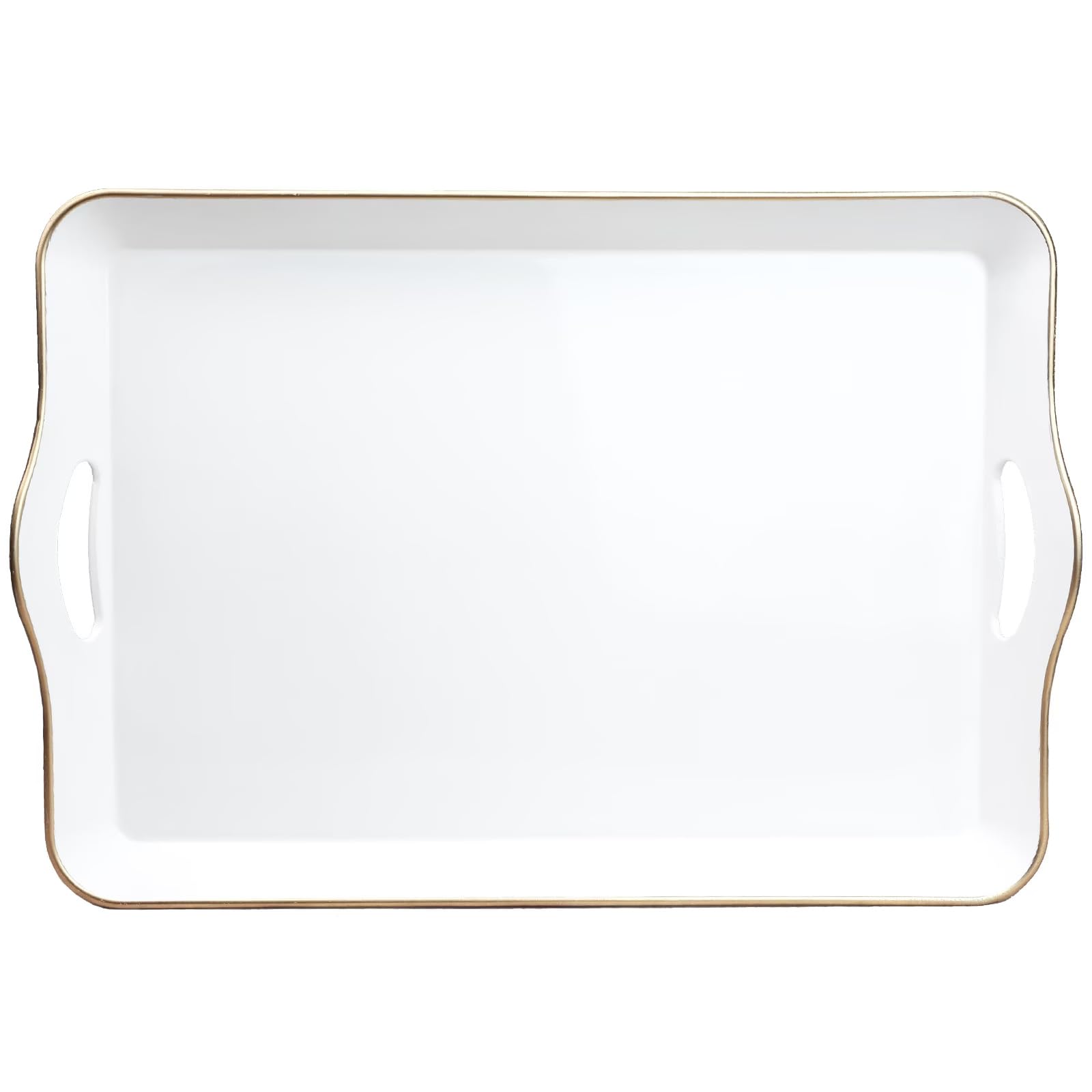 Spsyrine White Decorative Serving Tray with Handles, Elegant Plastic Coffee Table Tray for Ottoman, Living Room, Home Decor