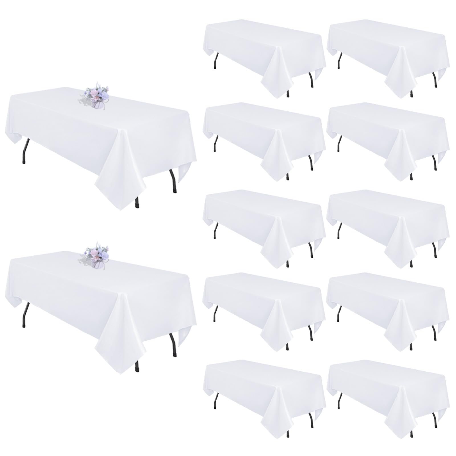 【Hight Material】: This White Table Cloth Rectangle Coming In 12 Packs Are Crafted From Polyester, Ensuring High Quality And Durability. These White Tablecloths For Rectangle Tables Also Have A Soft Touching Like A Cotton Blend, To Give You A Comfortable And Elegants Dining Experience. 【Budget