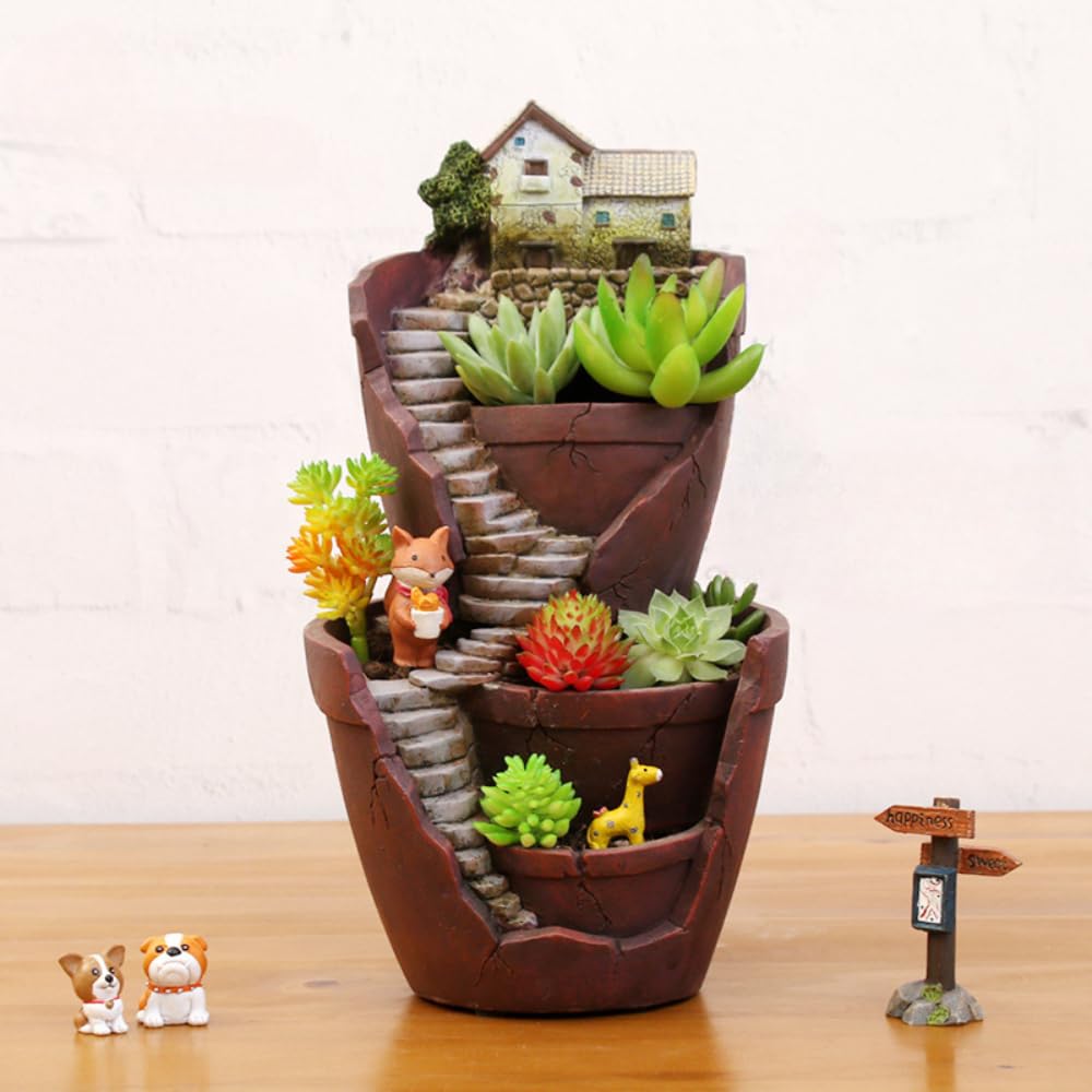 HIGH QUALITY: This planter is hand-crafted from durable frost-resistant resin, which will not rot or become brittle over time or be ruined by prolonged rain or humidity. Concrete’s durability and versatility allows the planters to be used inside or outside SIZE: Succulent Pot flower planters, over