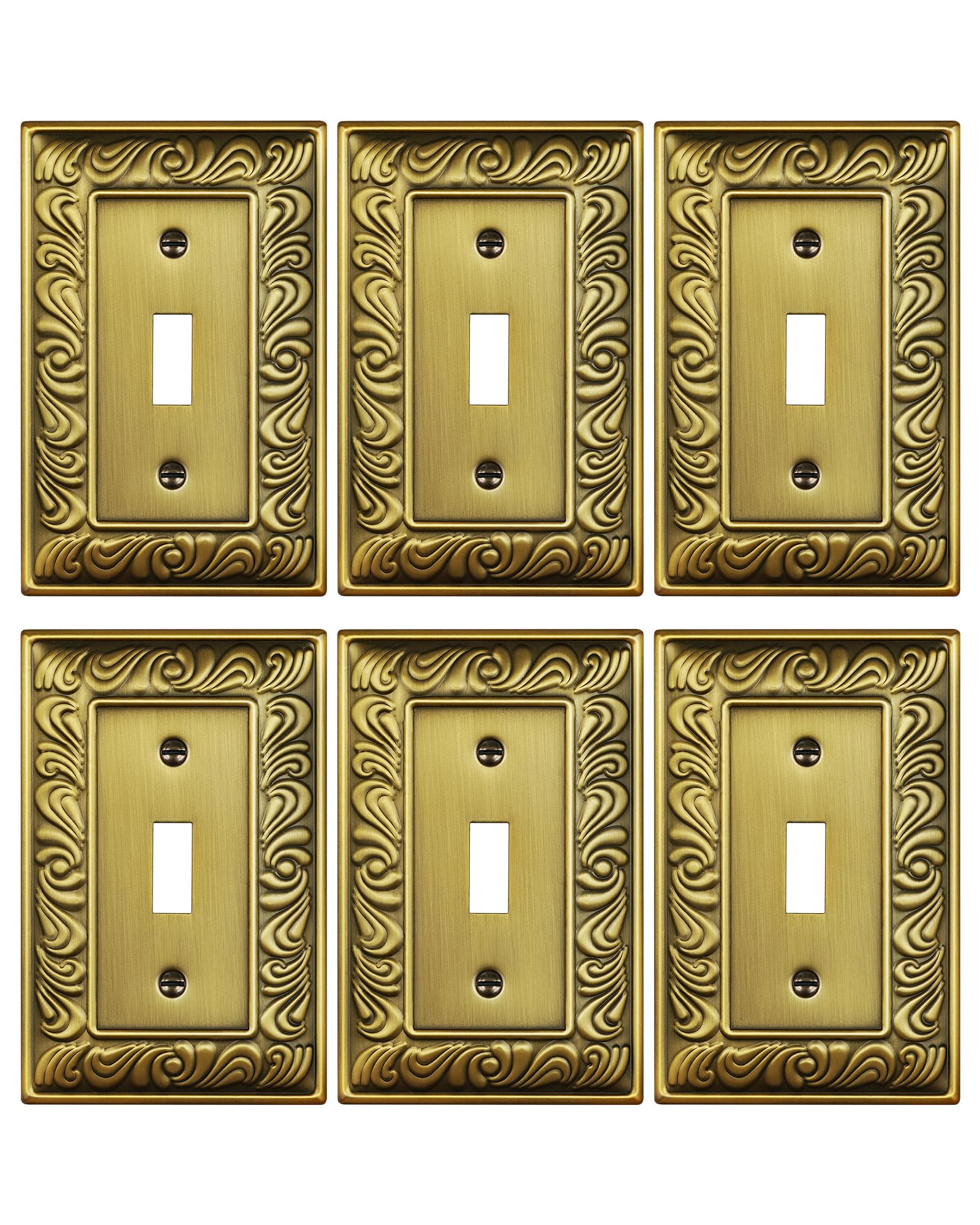 6-Pack Single Toggle Light Switch Cover Plate, Paisley Pattern Decorative Switch Plate Covers, Antique Brass 1 Gang Metal Wall Plate, Corrosion