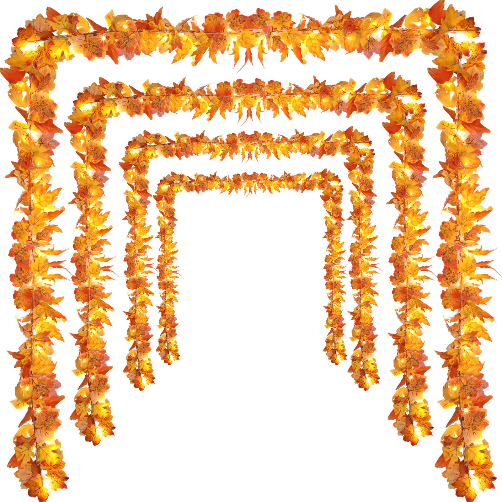 Ceenna 4 Pack Fall Leaves Garland String Lights Fall Decor 23 ft 80 LED Maple Leaf Garland Lighted Thanksgiving Decorations for Home Indoor Outdoor