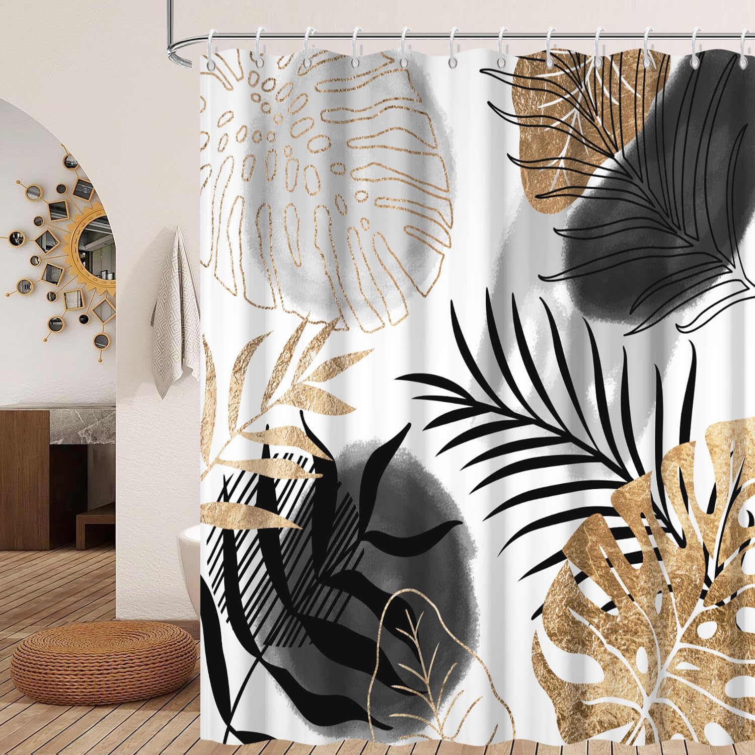 Uiiooazy Boho Shower Curtains for Bathroom Mid Century Gold Grey Tropical Palm Leaves Minimalist Hotel Dorm Modern Waterproof Fabric Shower Curtain