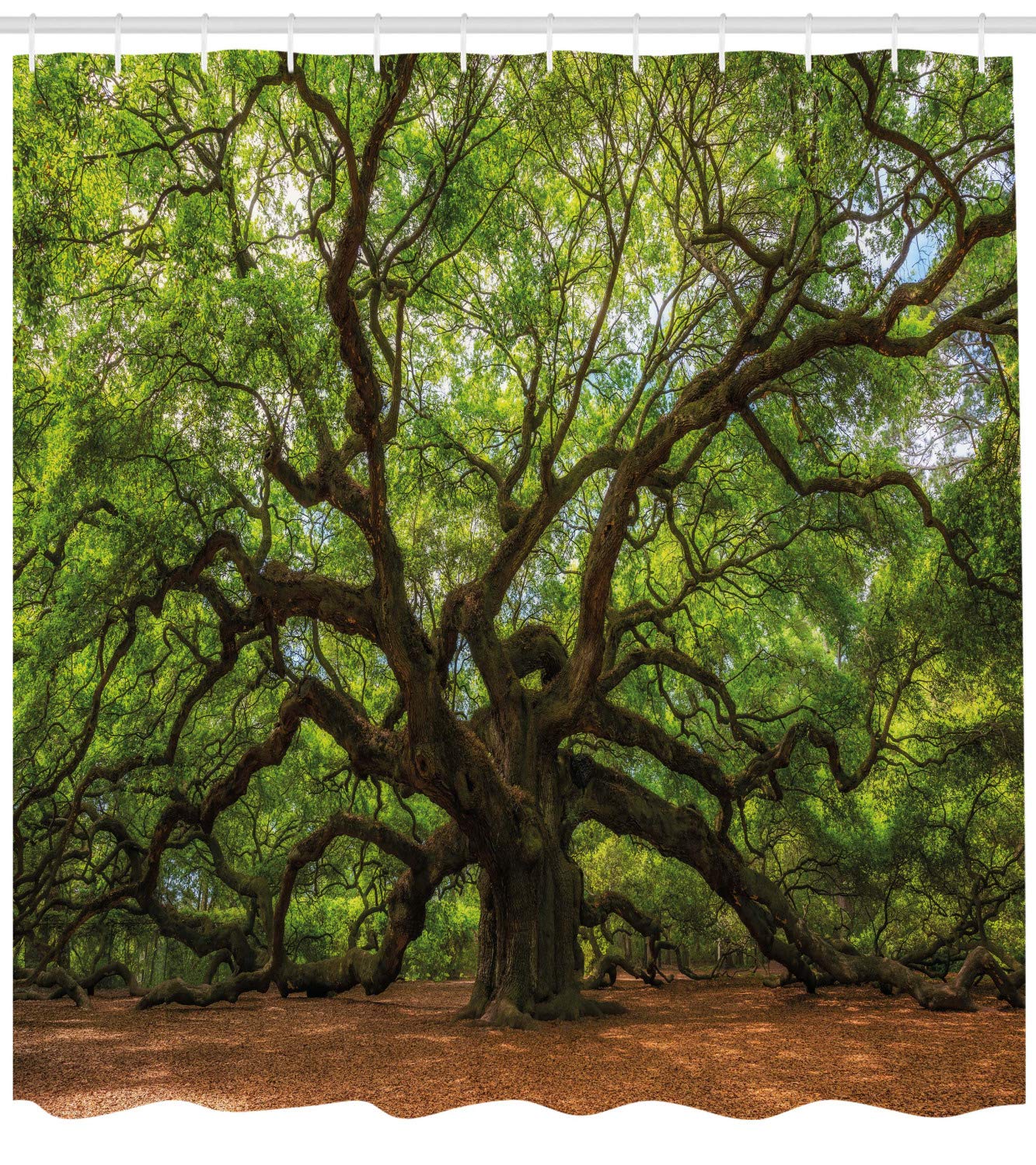 Lunarable Nature Shower Curtain, The Massive Old Angel Oak Tree in South Carolina Growth Essence, Cloth Fabric Bathroom Decor Set with Hooks, 69" W x
