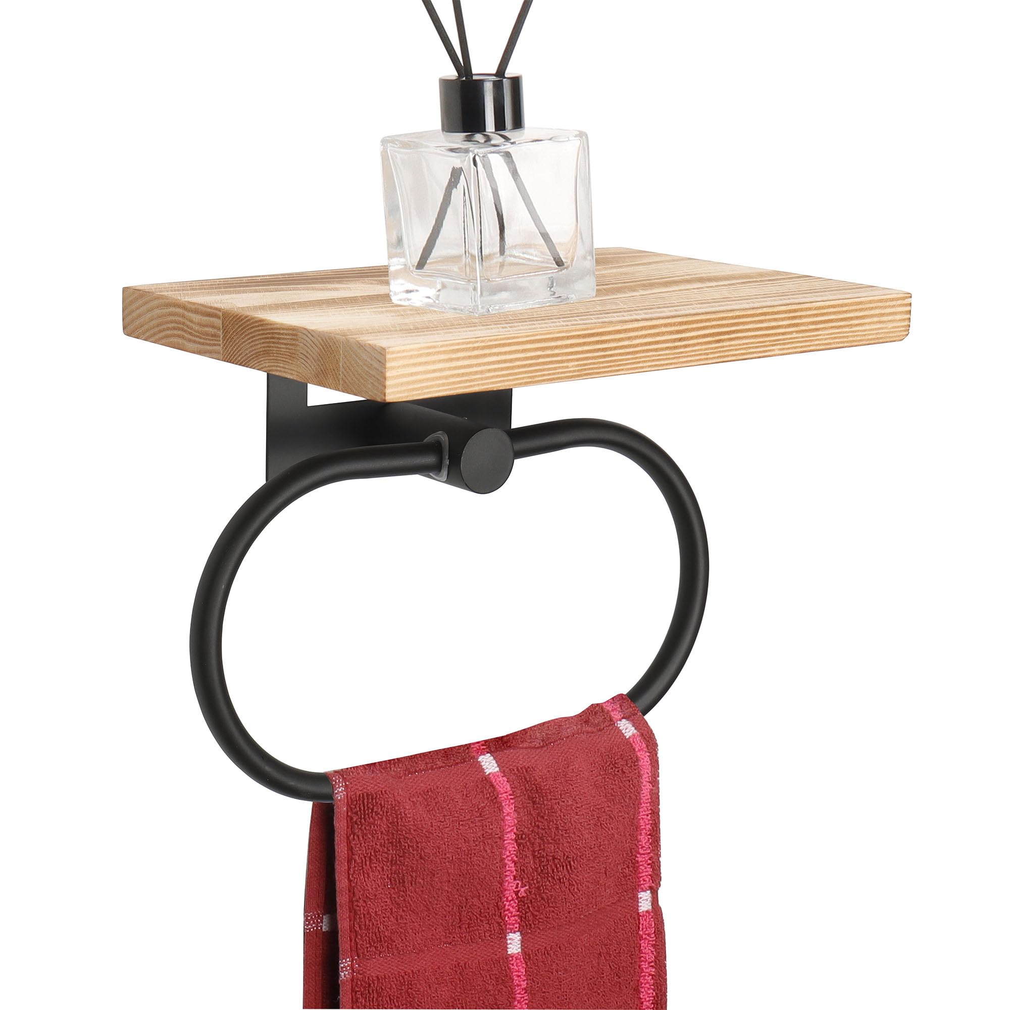TocTen Hand Towel Holder for Bathroom Wall Mount Towel Ring with Wooden Shelf, Premium Metal Hand Towel Rack, Bathroom Accessories Rustic Hand Towel