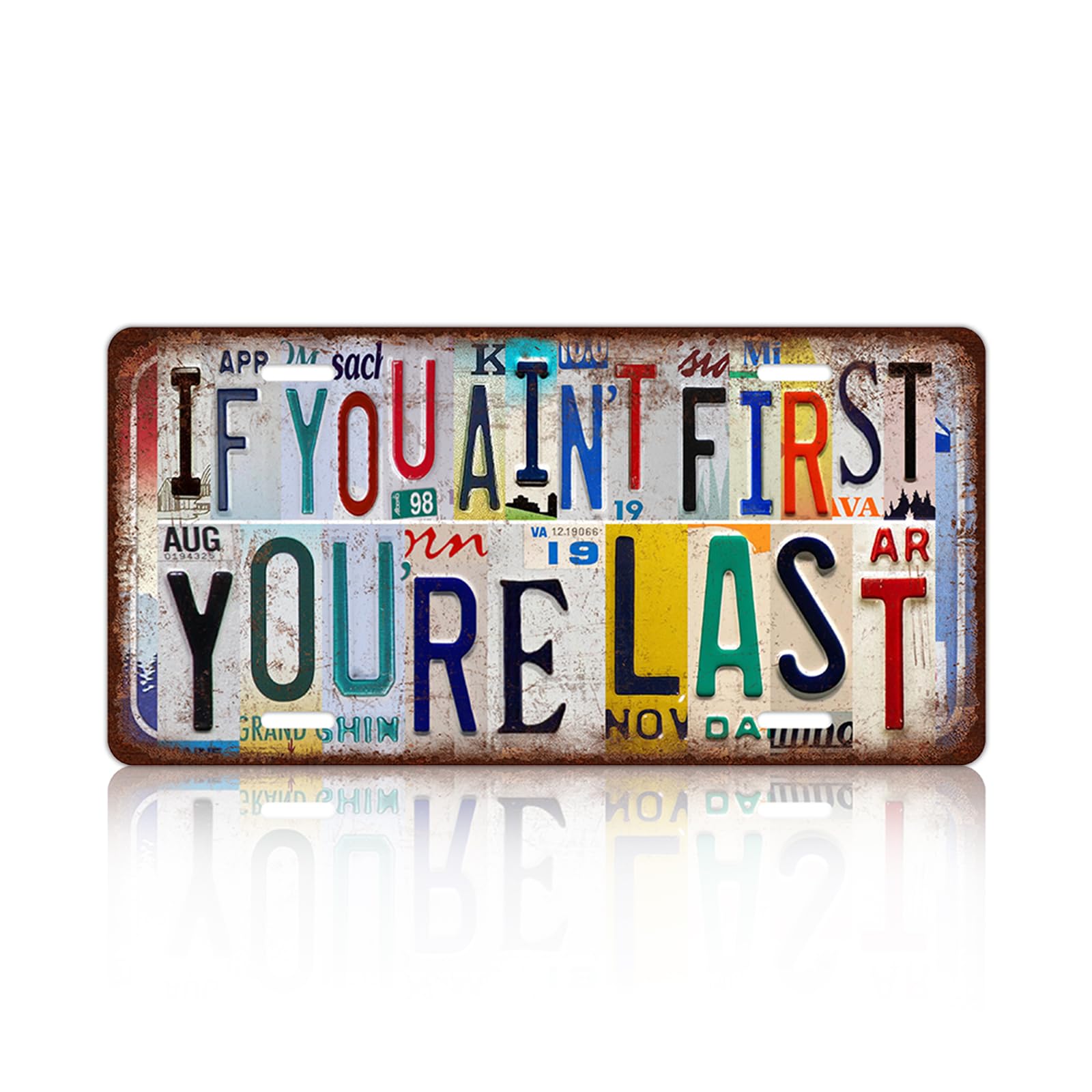 Vintage License Plate Wall Decor If You Ain't First You're Last Often Metal Tin Sign For Bar Home 12 x 6 Inches