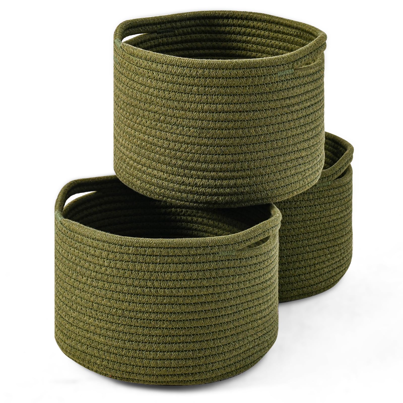 ICERZCZ Small Storage Baskets for Organizing, Organizer Baskets for Shelves, Green Woven Basket for Storage Decor, Small Decorative Cotton Rope Basket