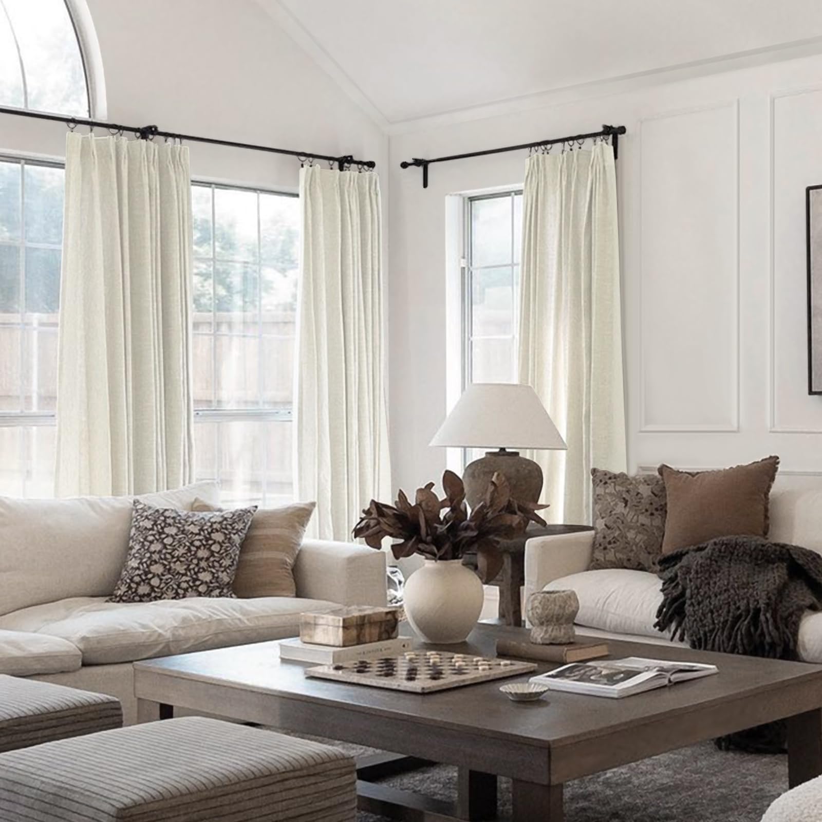 Included: Single curtain panel, made of premium linen and cotton. Each panel has a white cotton light-filtering privacy lining and comes with pin hooks, but not includes rings. Pinch Pleated: Pinch pleat drapery has permanent sewn-in pleats for a more luxurious, tailored look. 5 pleats for 26" width
