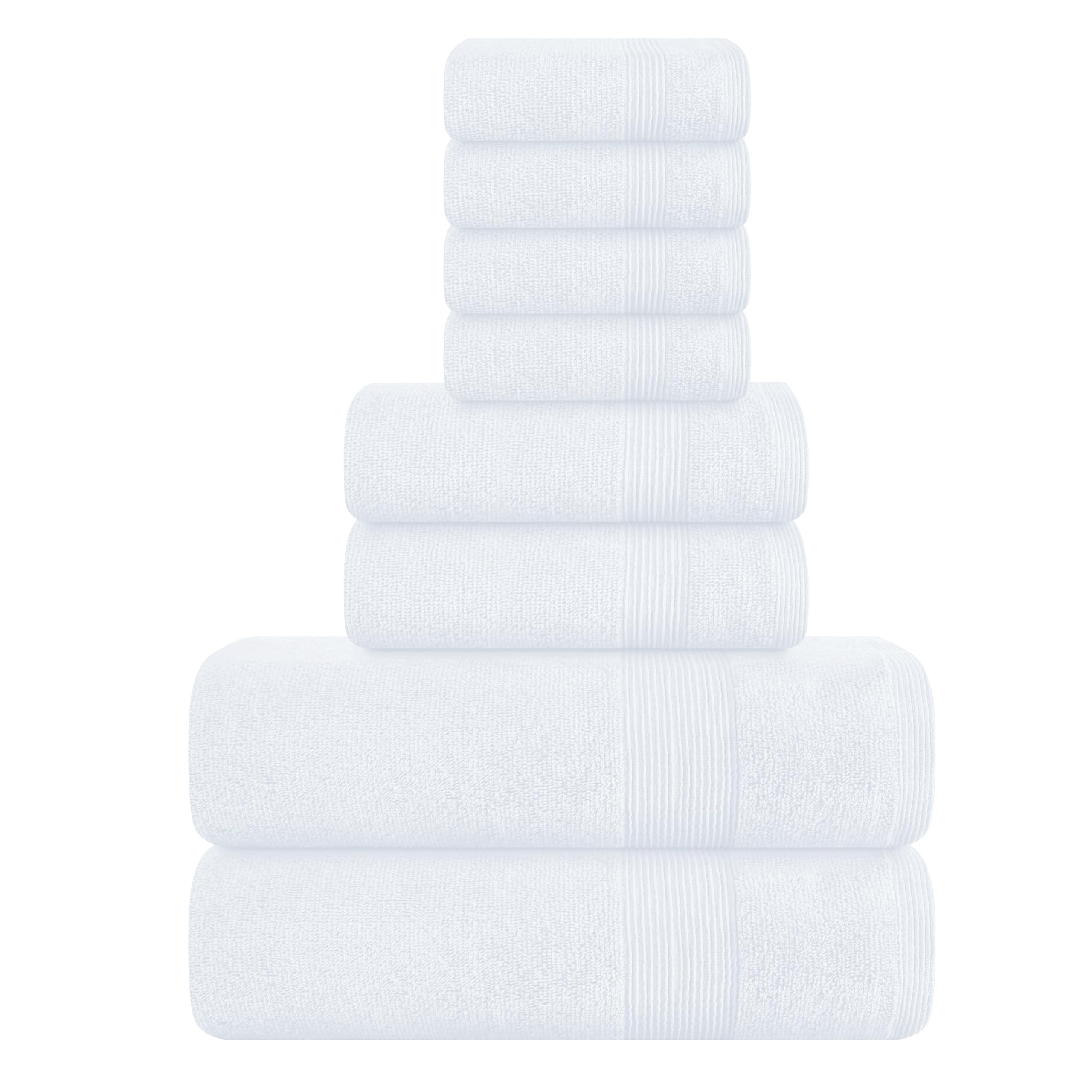 Belizzi Home 8 Piece Towel Set 100% Ring Spun Cotton, 2 Bath Towels 27x54, 2 Hand Towels 16x28 and 4 Washcloths 13x13 - Ultra Soft Highly Absorbent