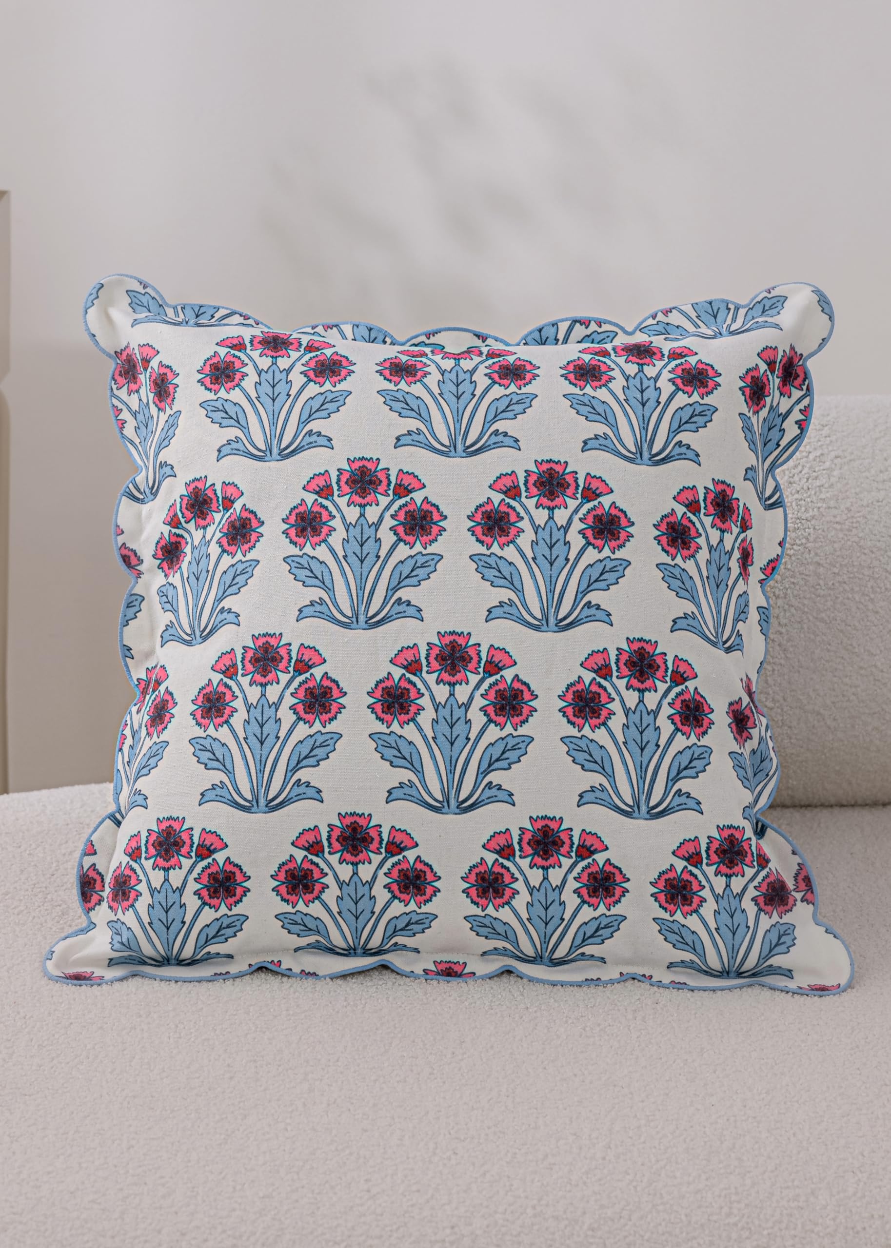 DrapePalette - Scalloped Throw Pillow Covers with Block Print Floral Patterns and Hidden Zipper - Pink Fern, 20 x 20 Inches Pack of 1 - Soft Indoor